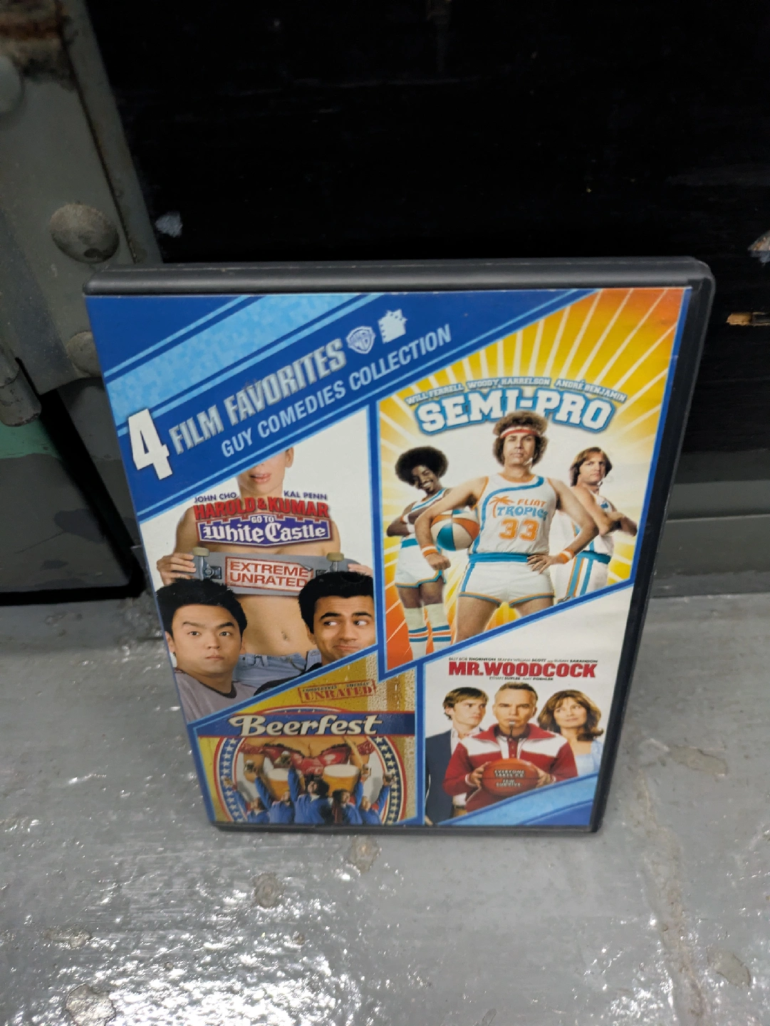 164Selling a 4 Film Favorites Guy Comedies Collection DVD set! It includes the movies Harold & Kumar Go to White Castle, Semi-Pro, Beerfest, and Mr. Woodcock. Great for a laugh!