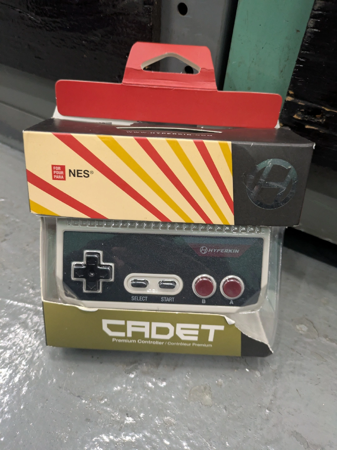 164Selling a Hyperkin Cadet Premium Controller for the NES. It is still in its original packaging. The box has some damage, but the controller itself is in perfect condition. It features an eight-way directional pad and two action buttons for precise control. Sold As Is