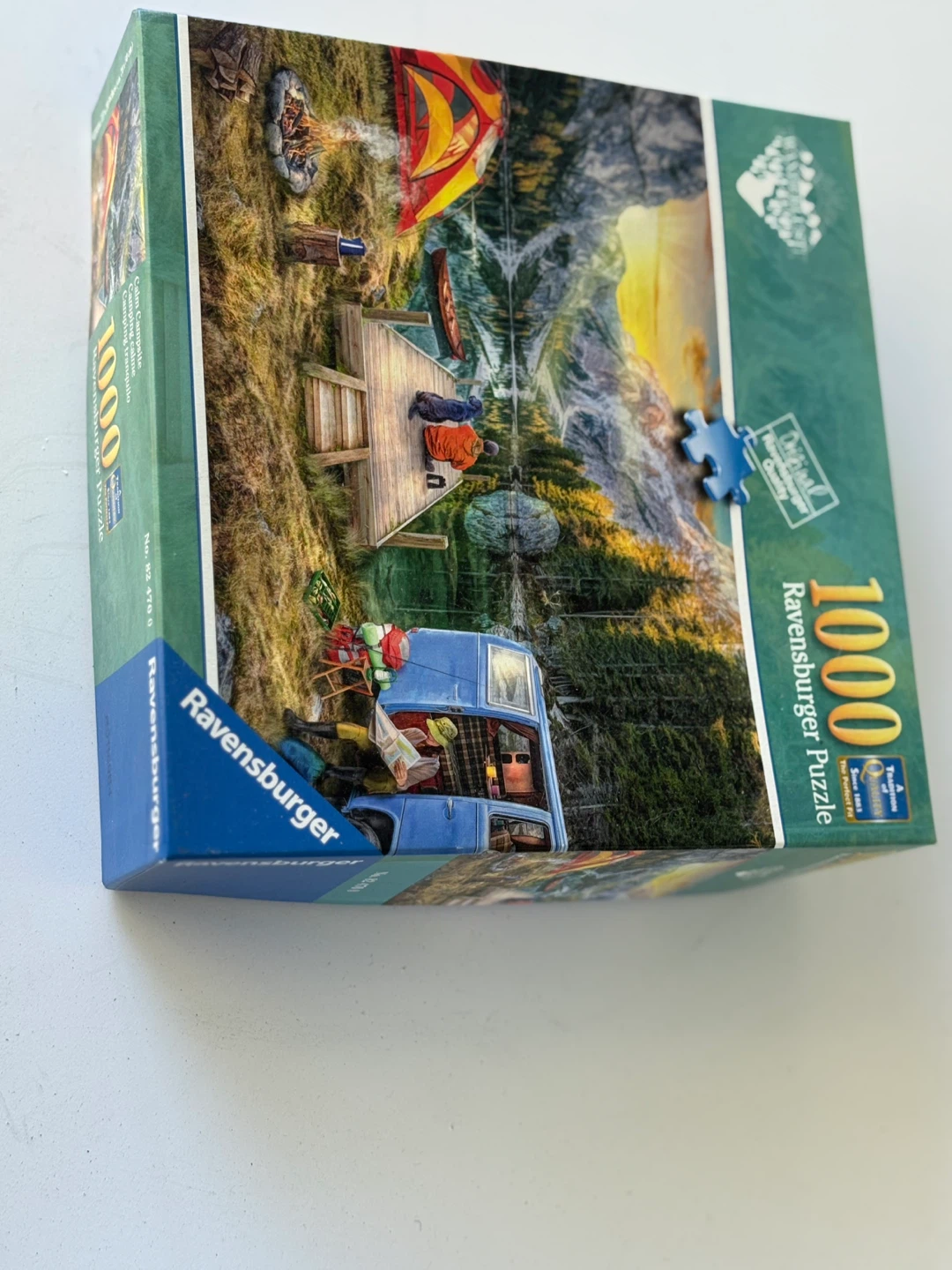 Selling a Ravensburger 1000 piece puzzle with a Calm Campsite theme. It's in great shape and ready for a new home! Enjoy the perfect fit of Ravensburger puzzles, known for their quality since 1883