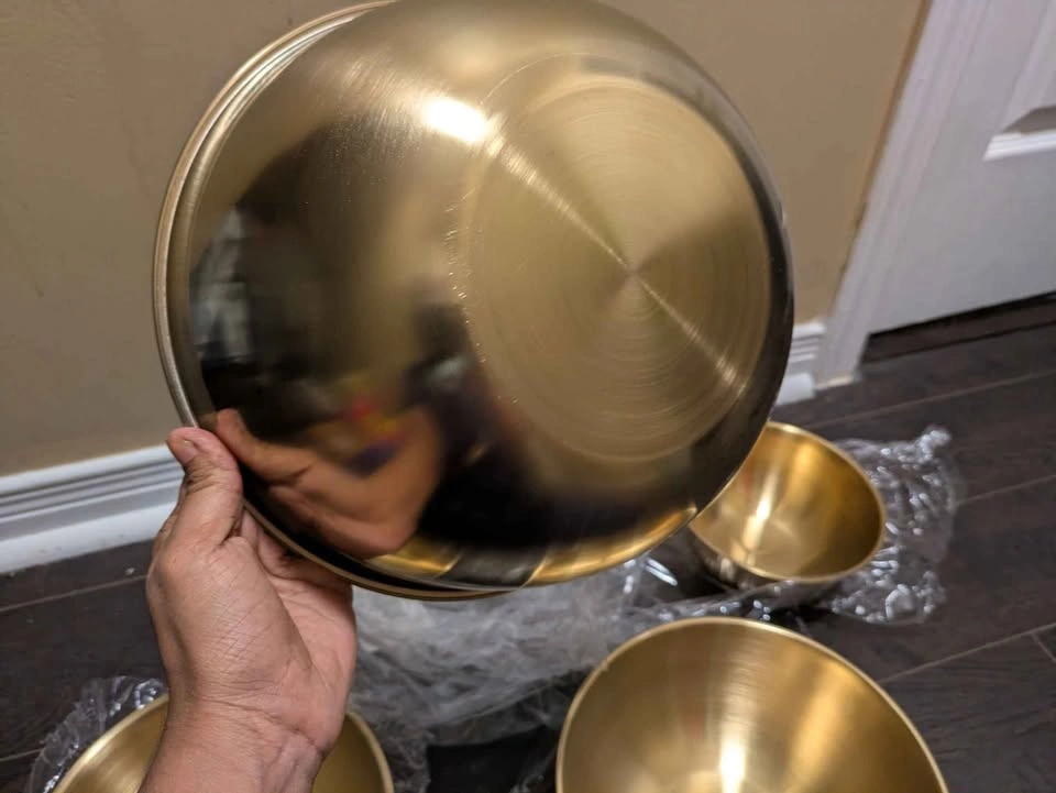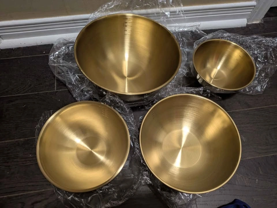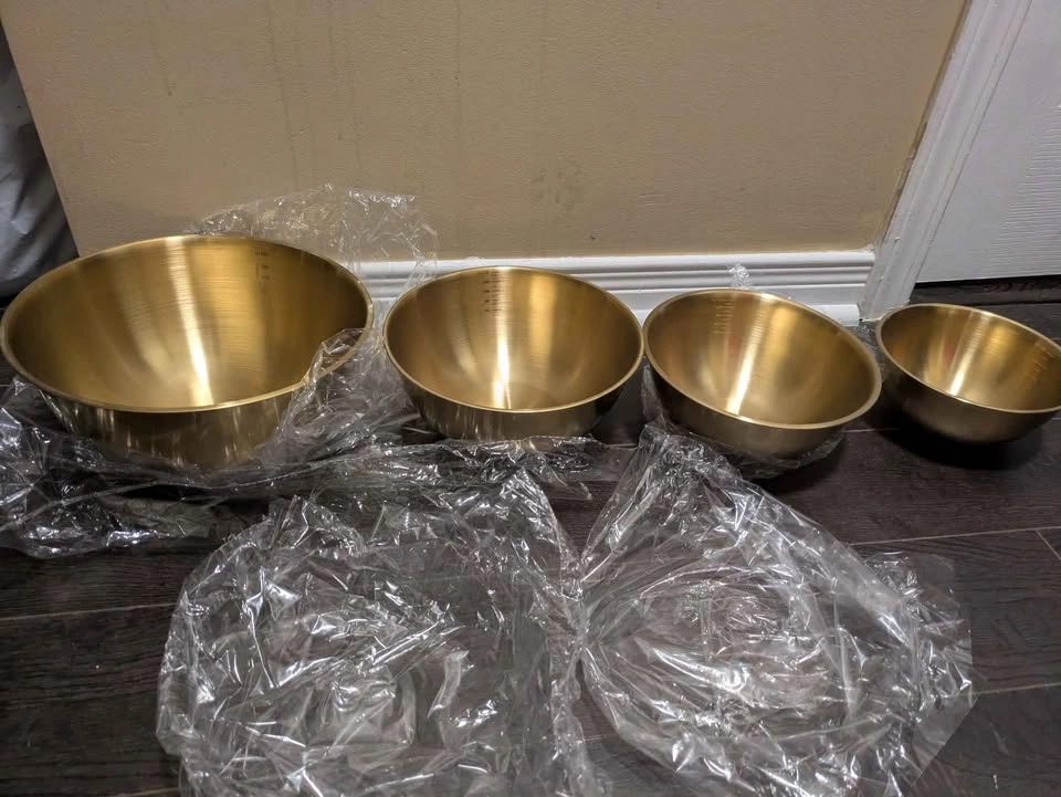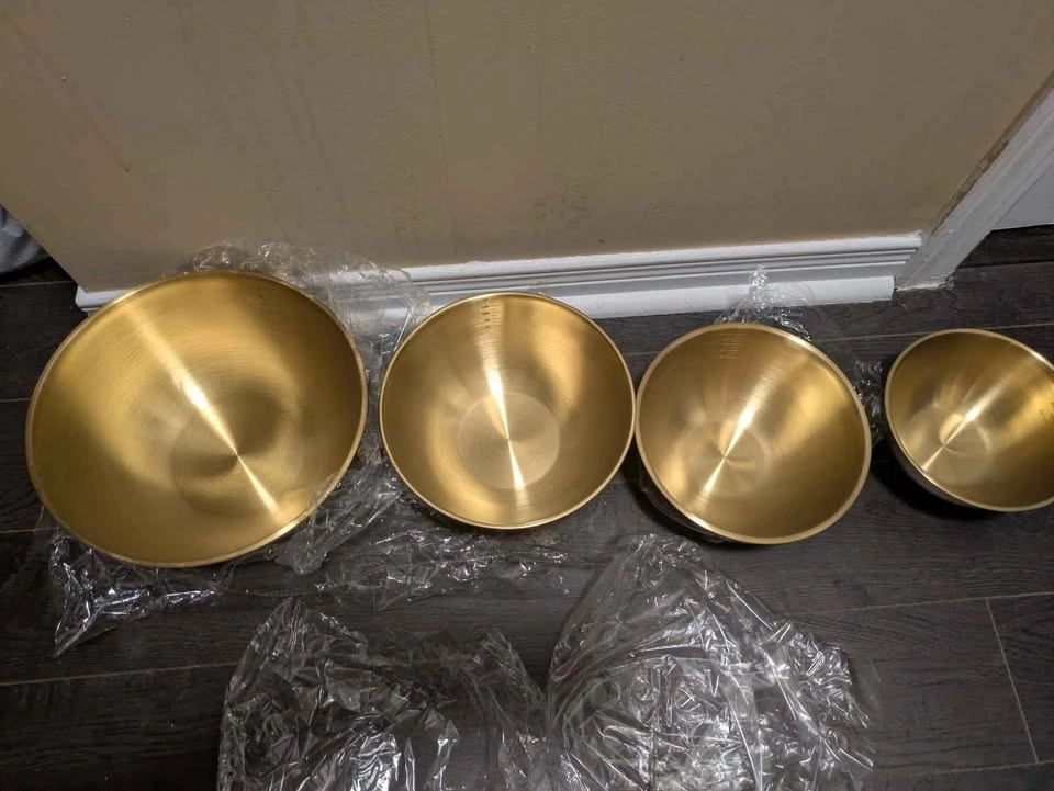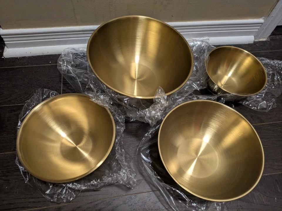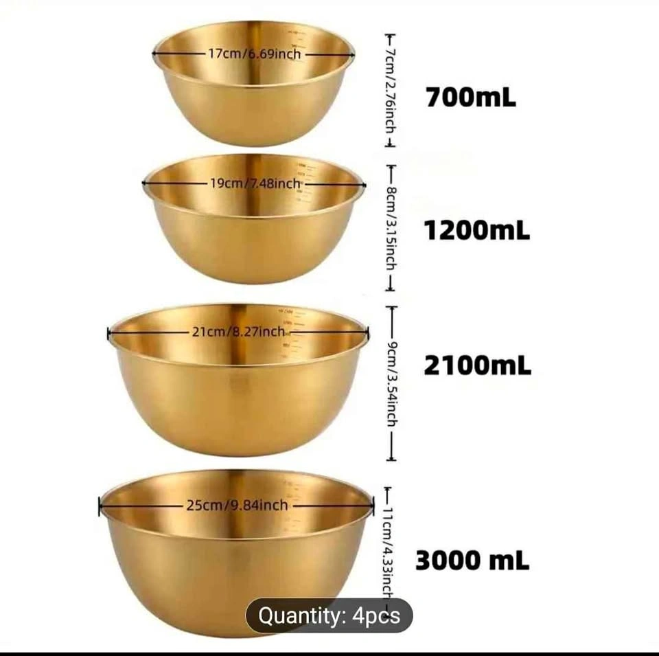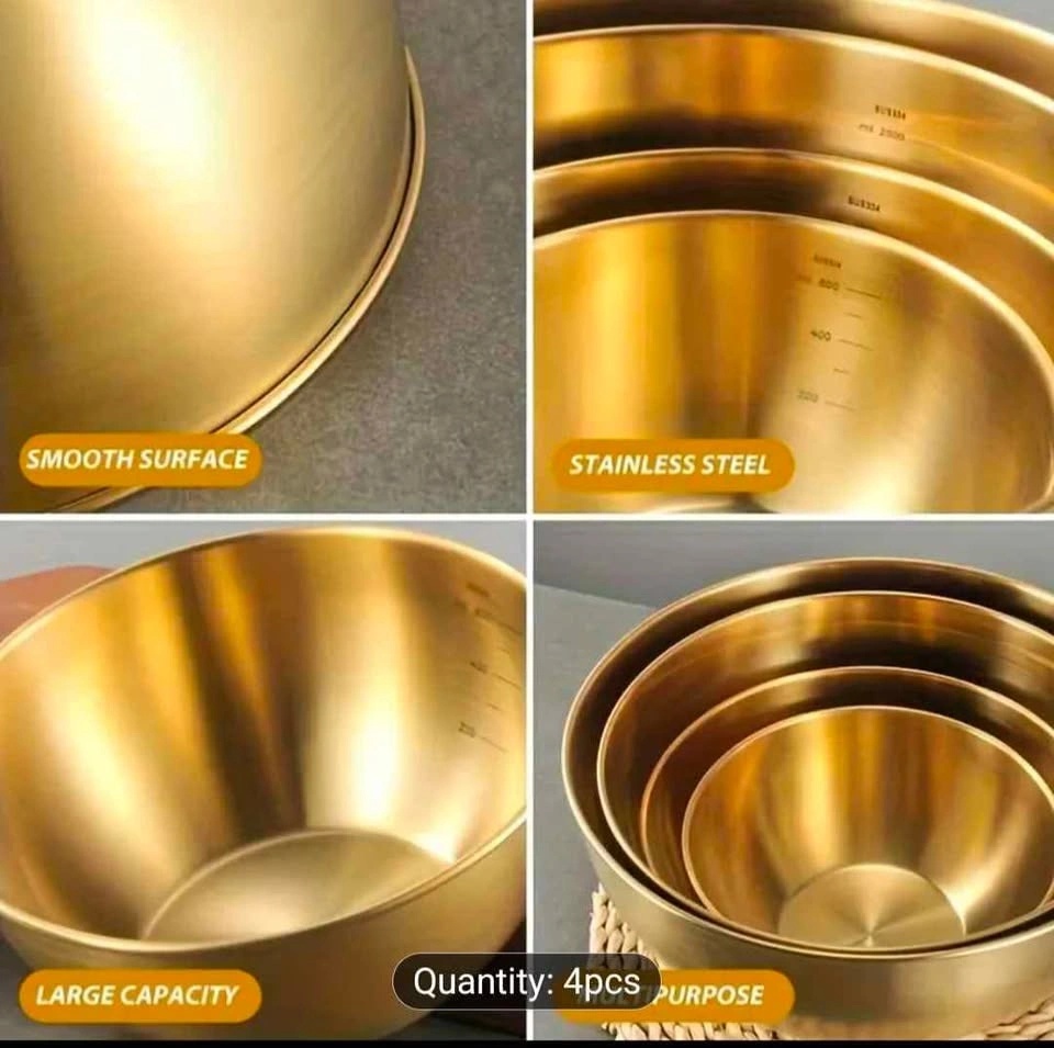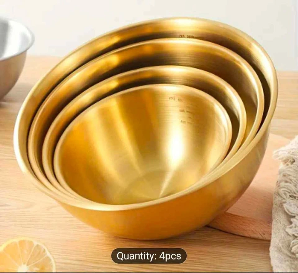 464pcs Golden Stainless Steel Mixing Bowls Set - Microwave & Dishwasher Safe, Rust Resistant, Ideal for Baking, Cooking, Serving, Vegetable Washing, Round Shape, Durable Kitchenware, Baking Essentials|Elegant Kitchenware|Durable Kitchenware please check out my other listings for other bags and party clutches at good prices cash only no holds no refund pick up near erin mills town centre mall please serious buyers only message