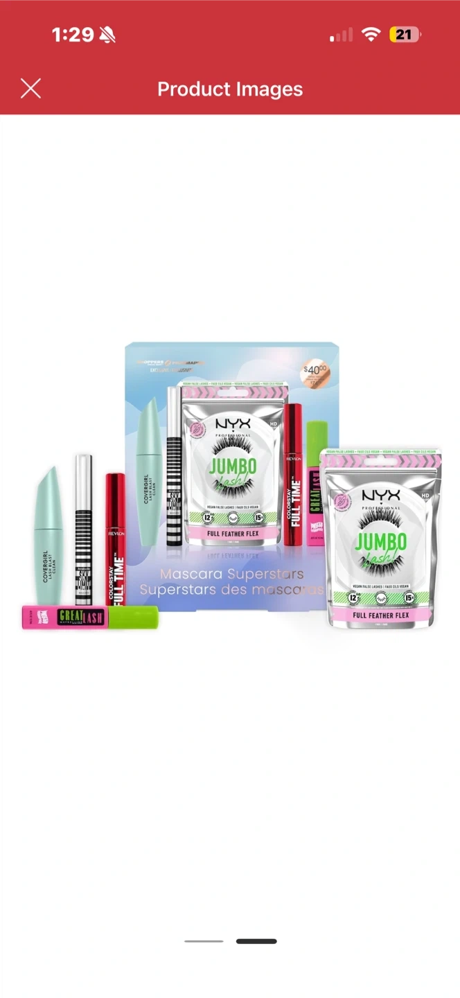 Brand new in sealed box! Selling a Mascara / Lashes Superstars set which includes full-sized mascaras from Covergirl, Annabelle, Revlon, Maybelline, and NYX false lashes! Set includes: • COVERGIRL Lash Blast Clean Volume Mascara, Very Black • Annabelle Skylimit Extreme Length Mascara, Blackest Black • Revlon ColorStay Full Time™ Mascara, Blackest Black • Maybelline Great Lash® Waterproof Mascara, Brownish Black • NYX Jumbo Lash! Vegan False Lashes The retail value is $74.75!