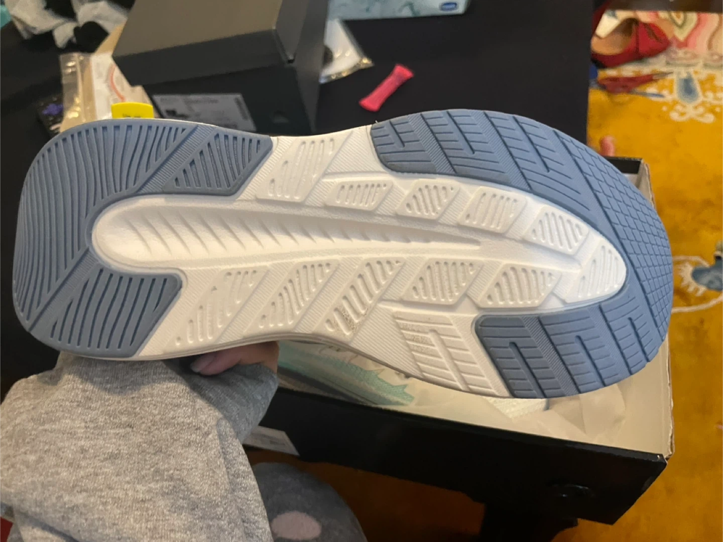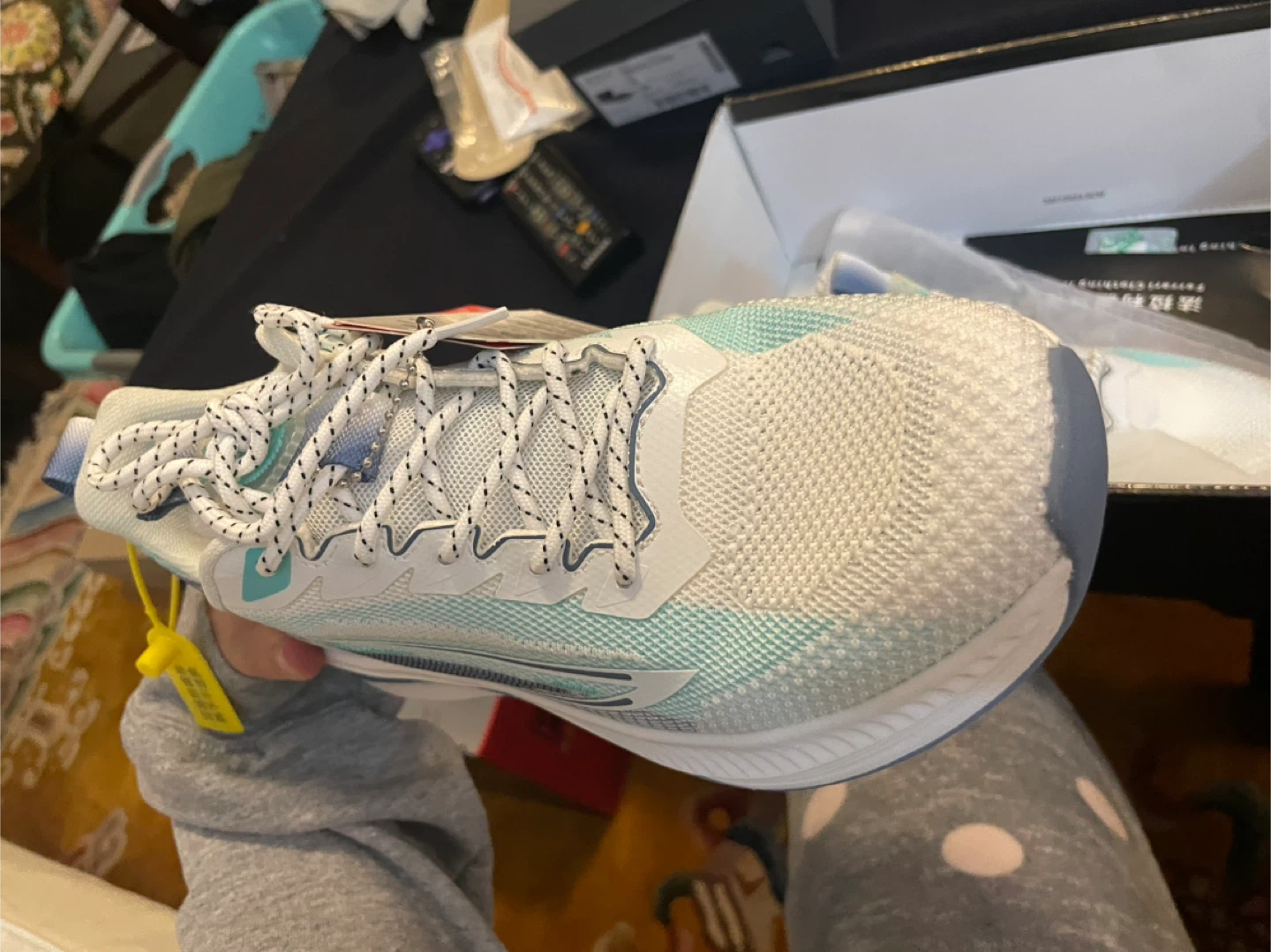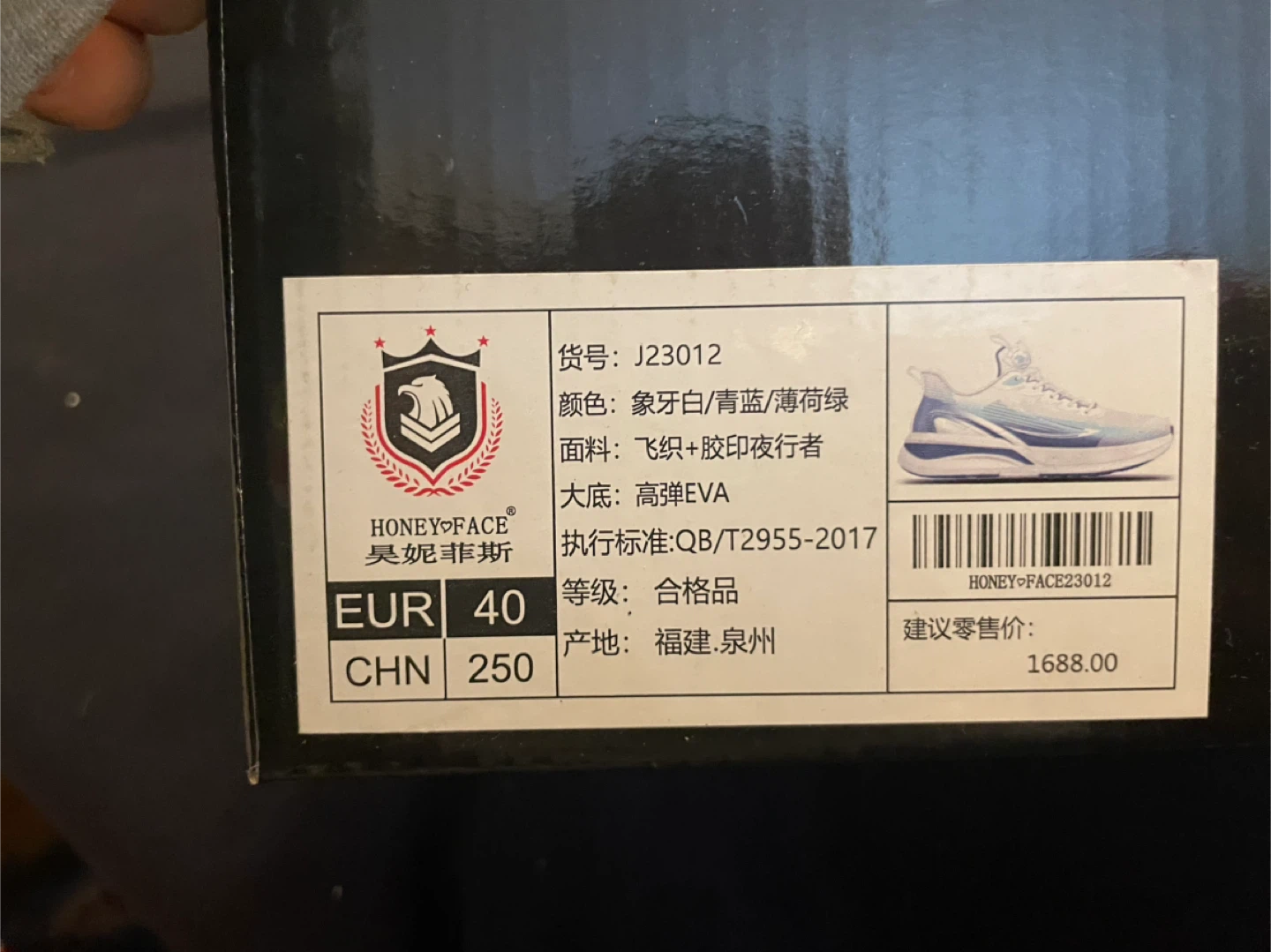 Selling a BRAND NEW NEVER WORN pair of Honey Face running shoes in EUR size 40. These shoes feature a stylish design with a combination of ivory, light blue, and mint green colours. The upper material is made of woven fabric and adhesive printed material, with a high-elastic EVA sole. Comes with the original box!