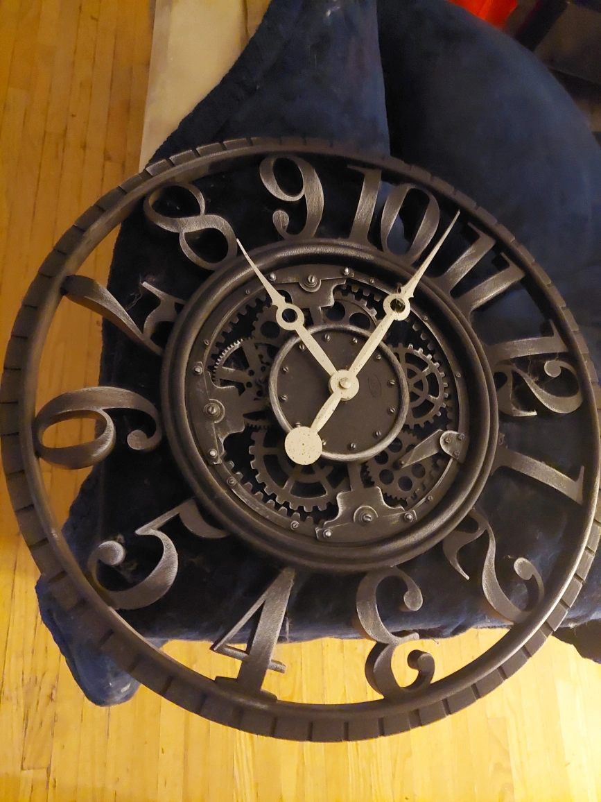 65Add a unique touch to your home with this decorative gear wall clock! It features a cool, industrial-inspired design with visible gears and bold numerals. It's a great statement piece for any room and is sure to catch the eye Operated by 1 AA battery