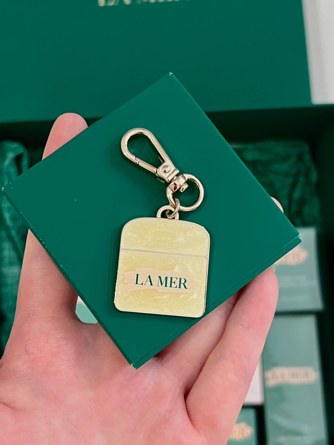 Selling a brand new, never used cute La Mer cream keychain! It comes with its original bag. It is a La Mer VIP gift. They feature the La Mer logo and iconic designs. Perfect for any La Mer fan! ***There are other La Mer goods such as makeup bag, storage box, mirrors, and bag/keychain charm.