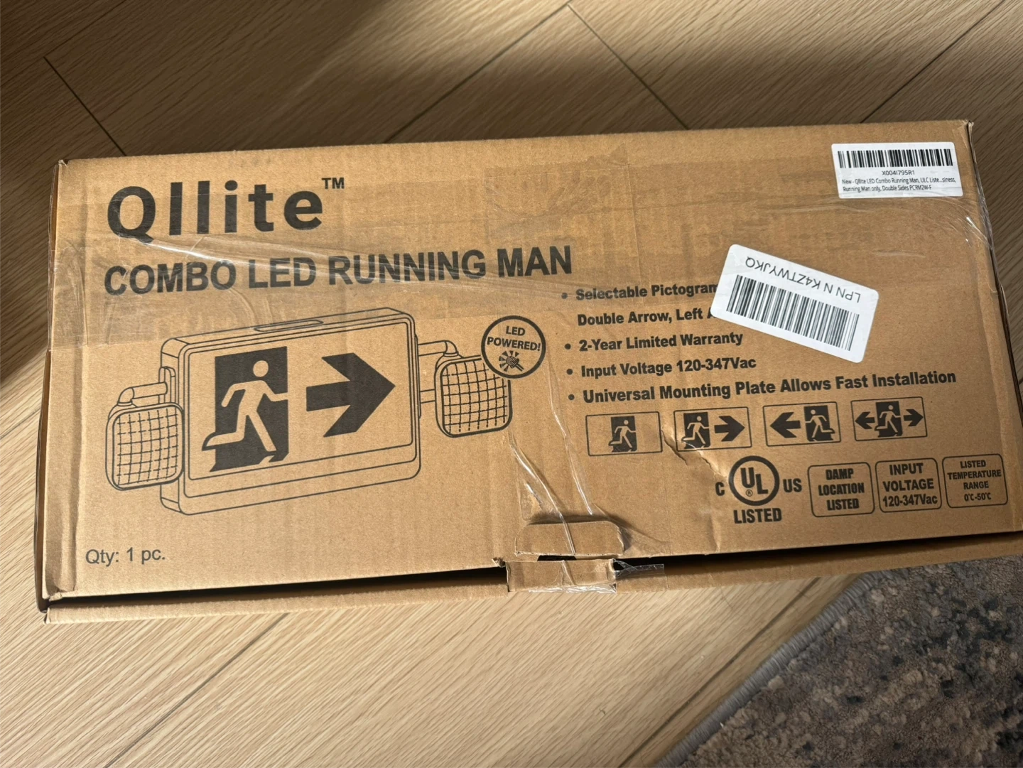 I'm selling a brand new Qllite Combo LED Running Man exit sign, still in its original box! It includes the LED sign, lights, installation hardware, and instructions. Perfect for commercial or residential use for safety and clear exit direction during emergencies