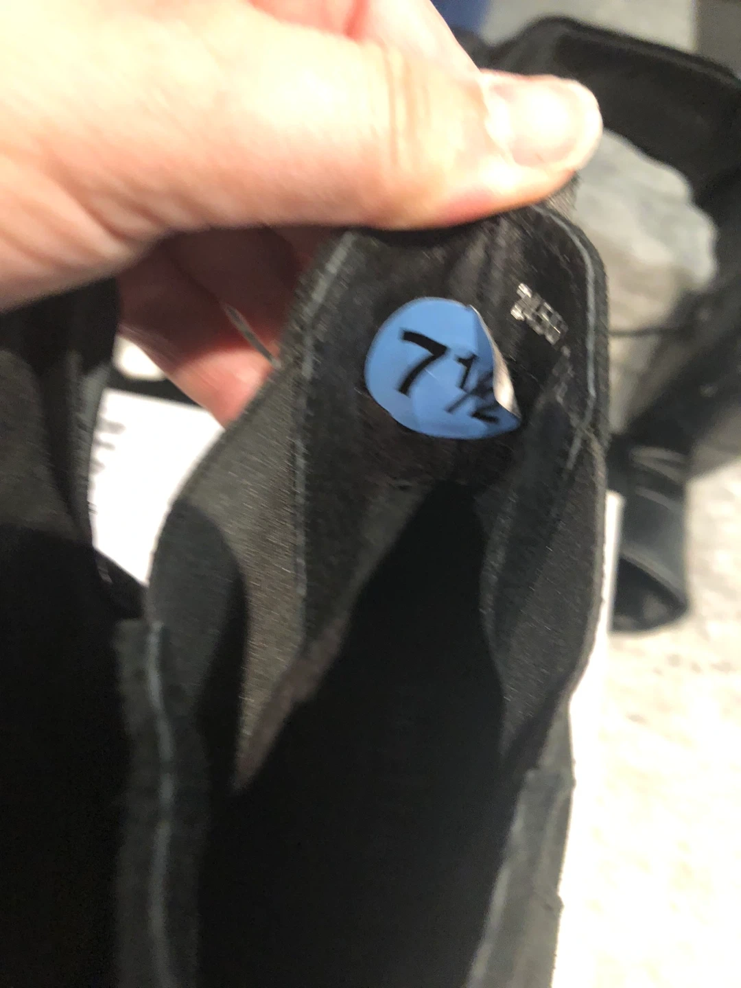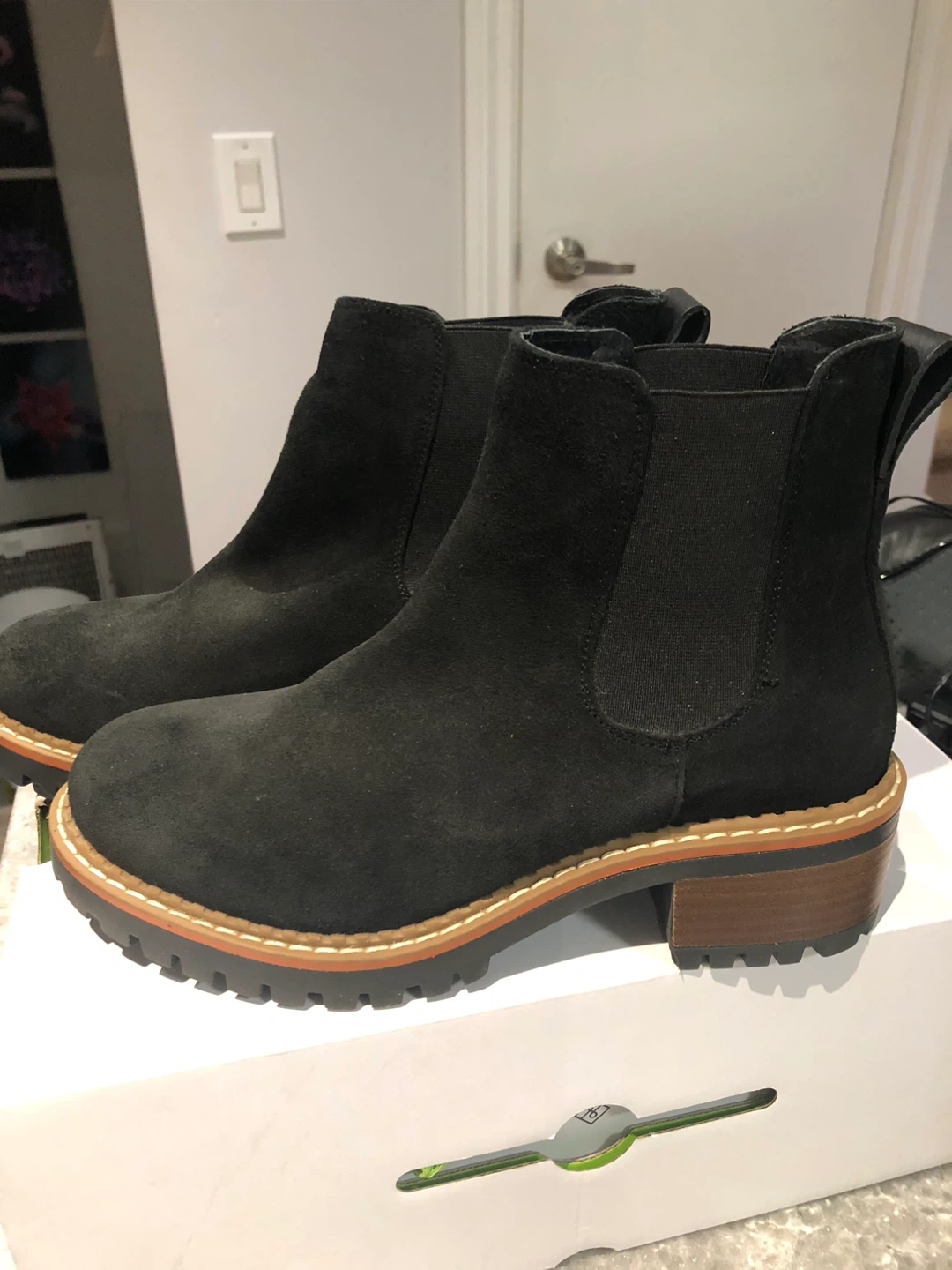 These are Bertuchi black suede boots, made in Spain. They are a size 7.5. The original price was $69.99.