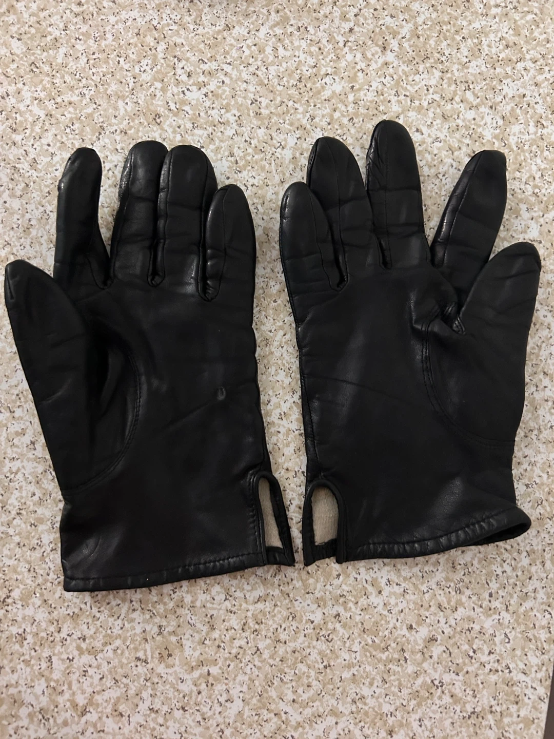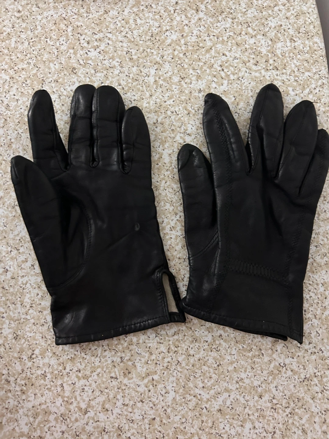 Selling a pair of (fake)leather gloves in black. They appear to be in good condition and ready for a new owner. Perfect for keeping your hands warm during the colder months!