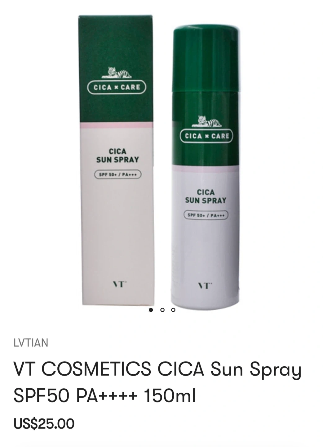 Selling a slightly used Korean VT CICA Sun Spray with SPF50 PA++++ in a 150ml size. Only used a few times, 95% left, like new. This sun spray formulated Centella Asiatica Extract helps protect against harmful UVA/UVB rays while cooling and calming the skin. This sun spray avoids the stickiness or oiliness. Refreshing formula, breathable and non greasy. Shake well before use. Hold the can 20 cm away from the skin and spray evenly on body. Do not spray on face directly. Spray on your palm and gently apply to face.