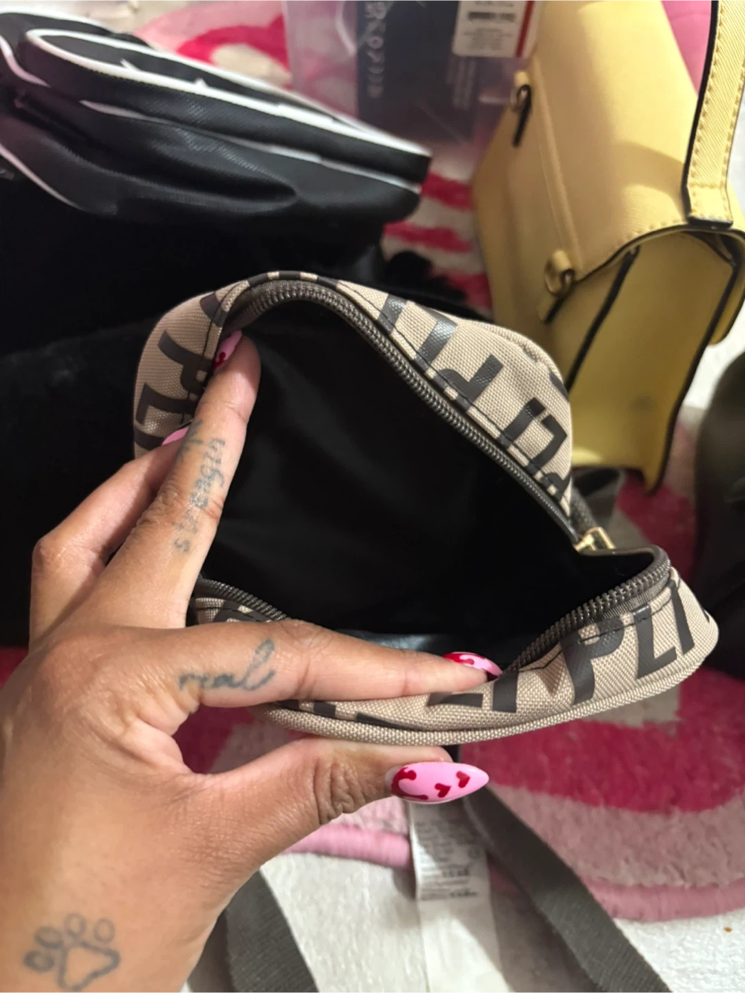 Used once. Selling a cute PLT crossbody bag! It's in great condition and perfect for carrying your essentials. The bag features the PLT logo all over and has a convenient zip closure. It's a stylish and practical accessory!