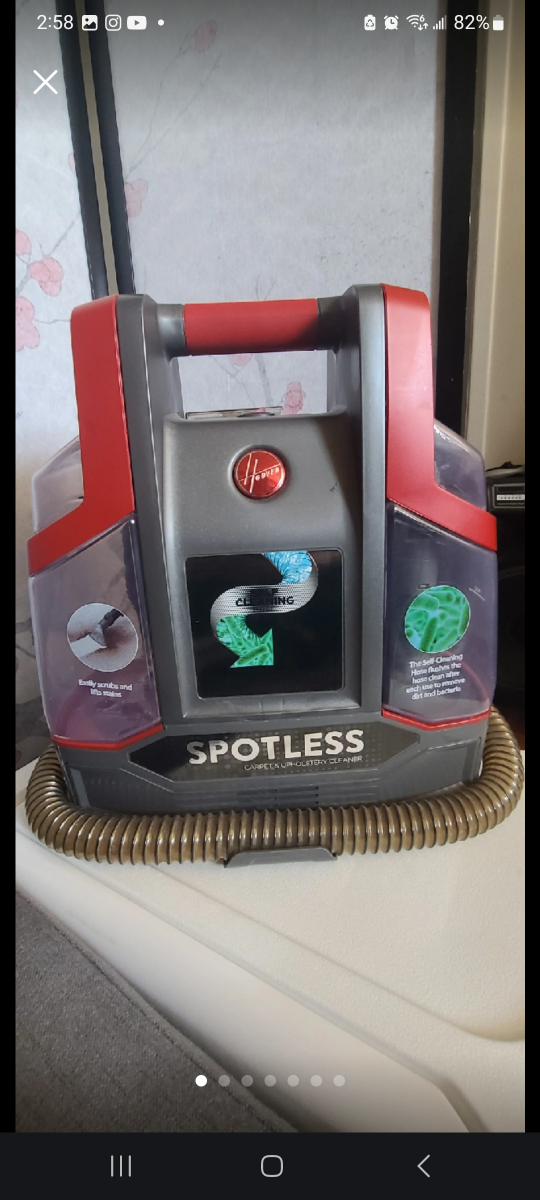 Selling a Hoover Spotless Carpet & Upholstery Cleaner. It's great for small spaces and quick clean-ups. The compact design makes it easy to store, and it's super handy for tackling those unexpected spills and stains!