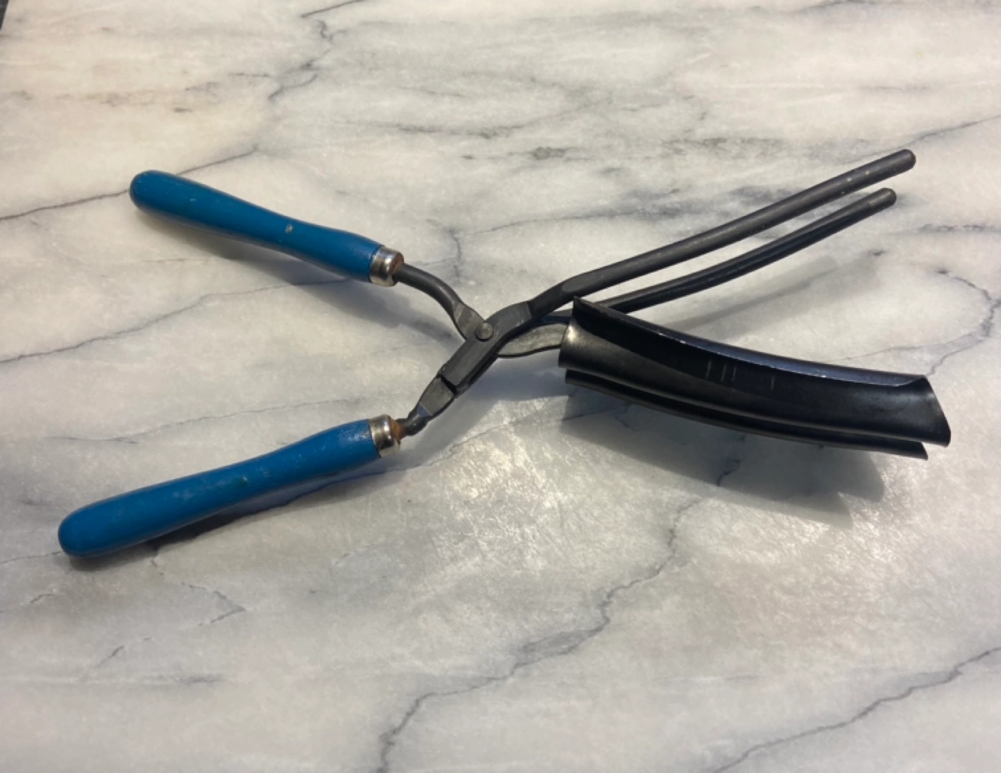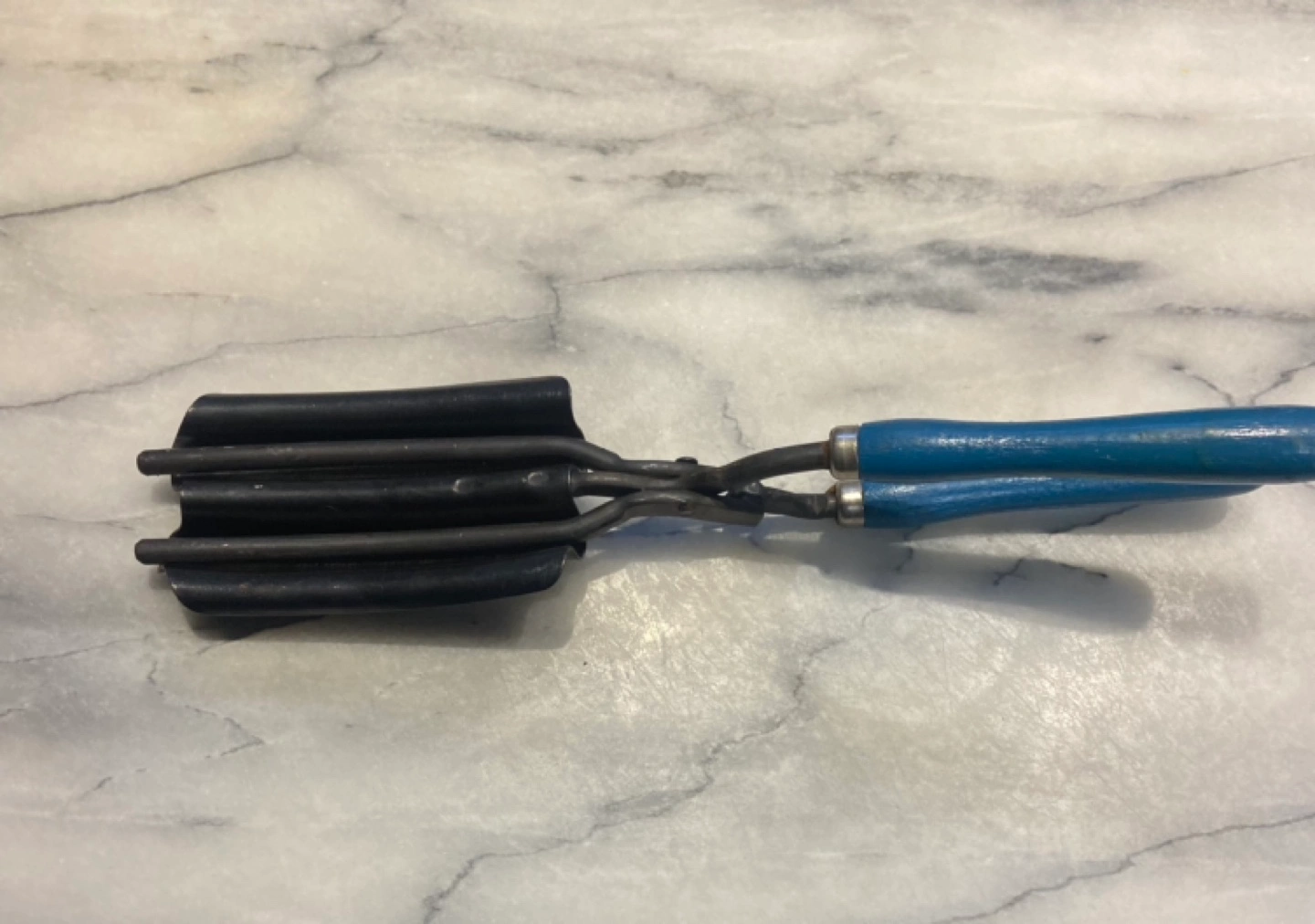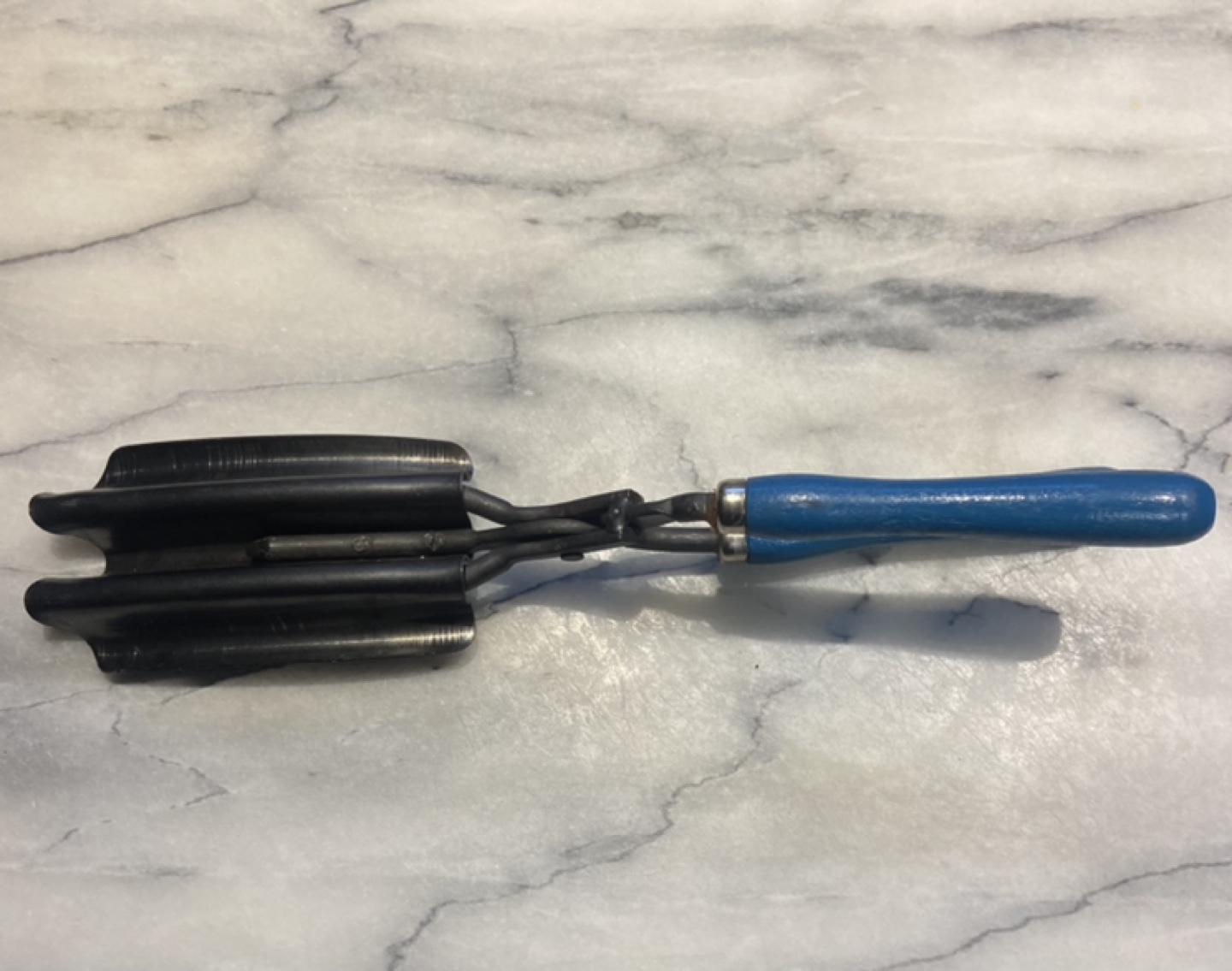 It has a blue wooden handle and shows some signs of age probably from early 30βs β¦.. it's still a cool piece of history!