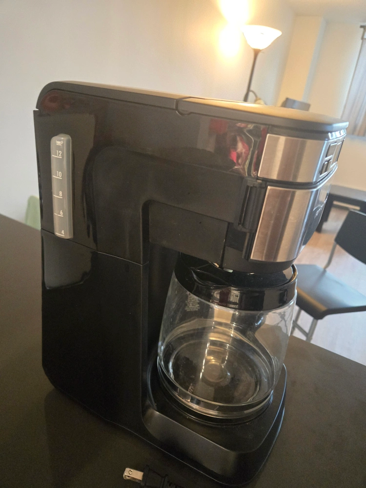 The Hamilton Beach 12-Cup Coffee Maker is a compact and efficient drip coffee machine perfect for home or office use. It features a durable, no-drip borosilicate glass carafe with a 12-cup capacity, ideal for serving multiple people. The coffee maker includes top-mounted digital controls with easy-touch programming, allowing you to set it up to 24 hours in advance for fresh coffee when you want it. It also offers a Select-a-Brew strength selector to customize your coffee as regular or bold according to your preference. The auto pause and serve feature lets you pour a cup mid-brew without any mess, and it automatically shuts off after 2 hours for safety and energy savings. Its compact design fits easily under kitchen cabinets, saving counter space. The machine comes in a sleek black and stainless steel finish that complements most kitchen decor.This coffee maker is in excellent condition, fully functional, and makes brewing multiple cups convenient and mess-free. Perfect for anyone needing a reliable, programmable coffee maker with customizable brew strength . Will trade make an offer.
