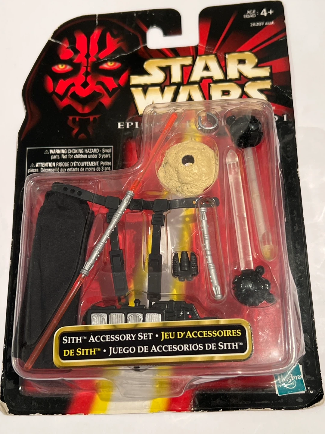 Selling a brand new in box Star Wars Episode I Sith Accessory Set! This set includes various accessories for your Star Wars figures, still sealed in the original packaging. A great addition for any Star Wars collector!