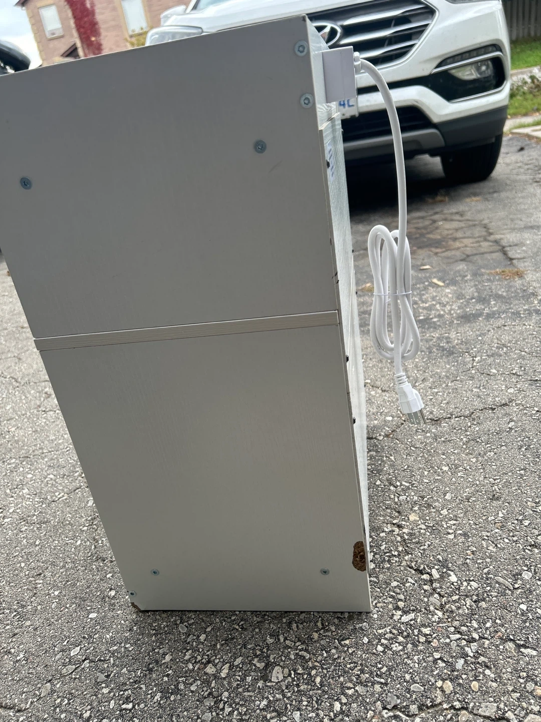 92Selling a white nightstand in great condition! It features a drawer for storage and a convenient USB port and outlet on top, perfect for charging your devices overnight. A stylish and functional addition to any bedroom slight damage as seen in pictures