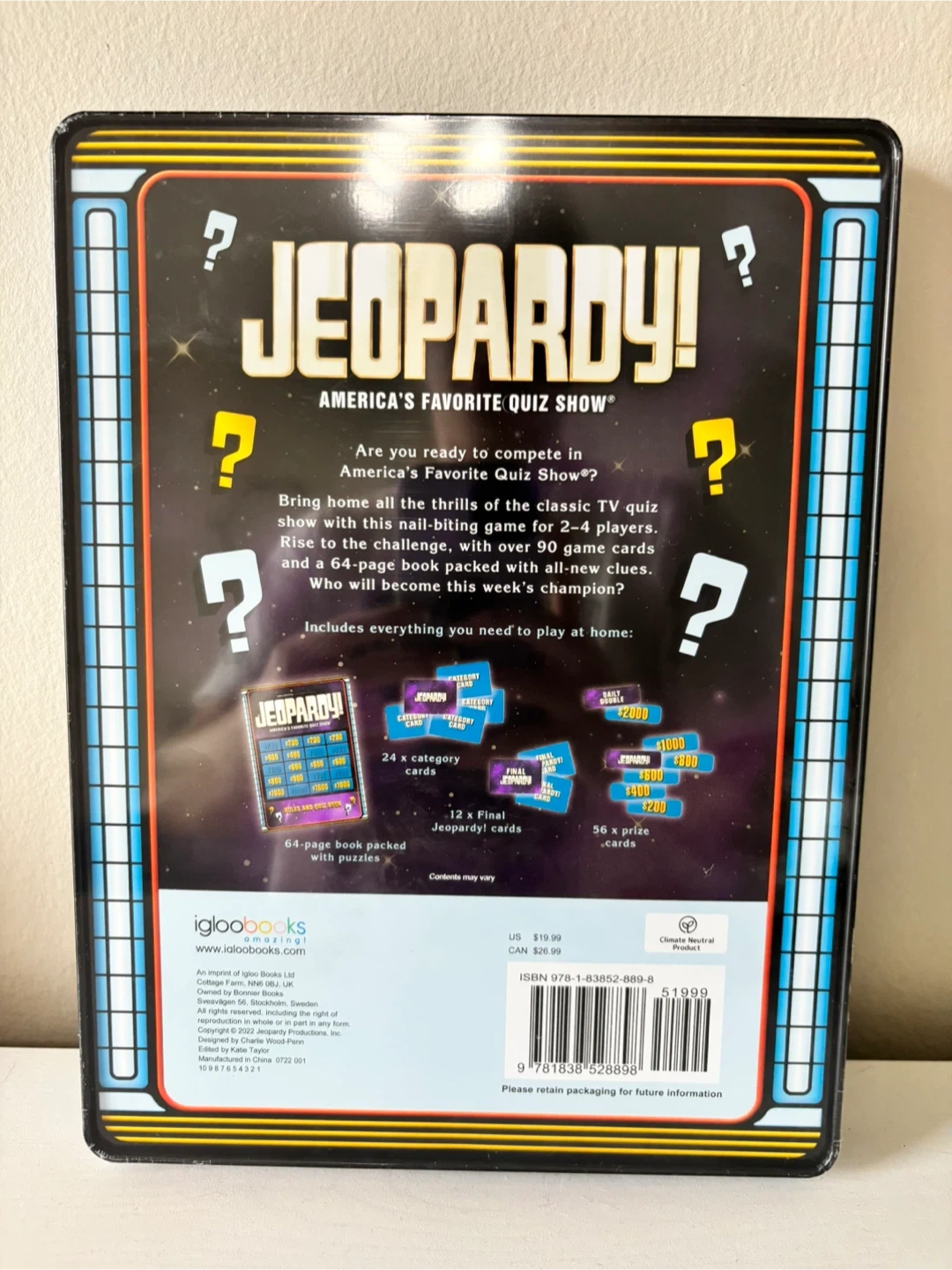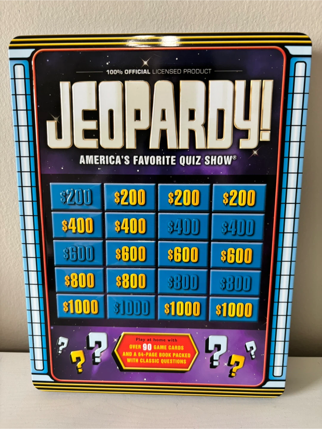 Get ready to compete in America's Favorite Quiz Show! This Jeopardy! game includes everything you need to play at home. It comes with over 90 game cards and a 64-page book packed with classic questions.