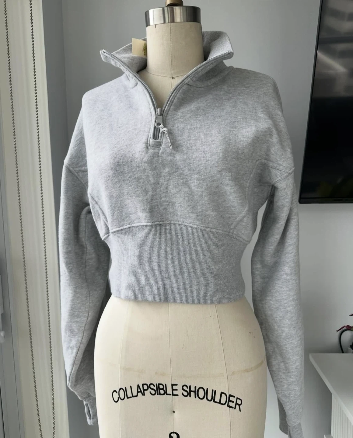 Selling a cute Aritzia TNA 1/2 zip cropped sweatshirt in grey! It's in great condition and perfect for layering or wearing on its own. The cropped length is super trendy and flattering!