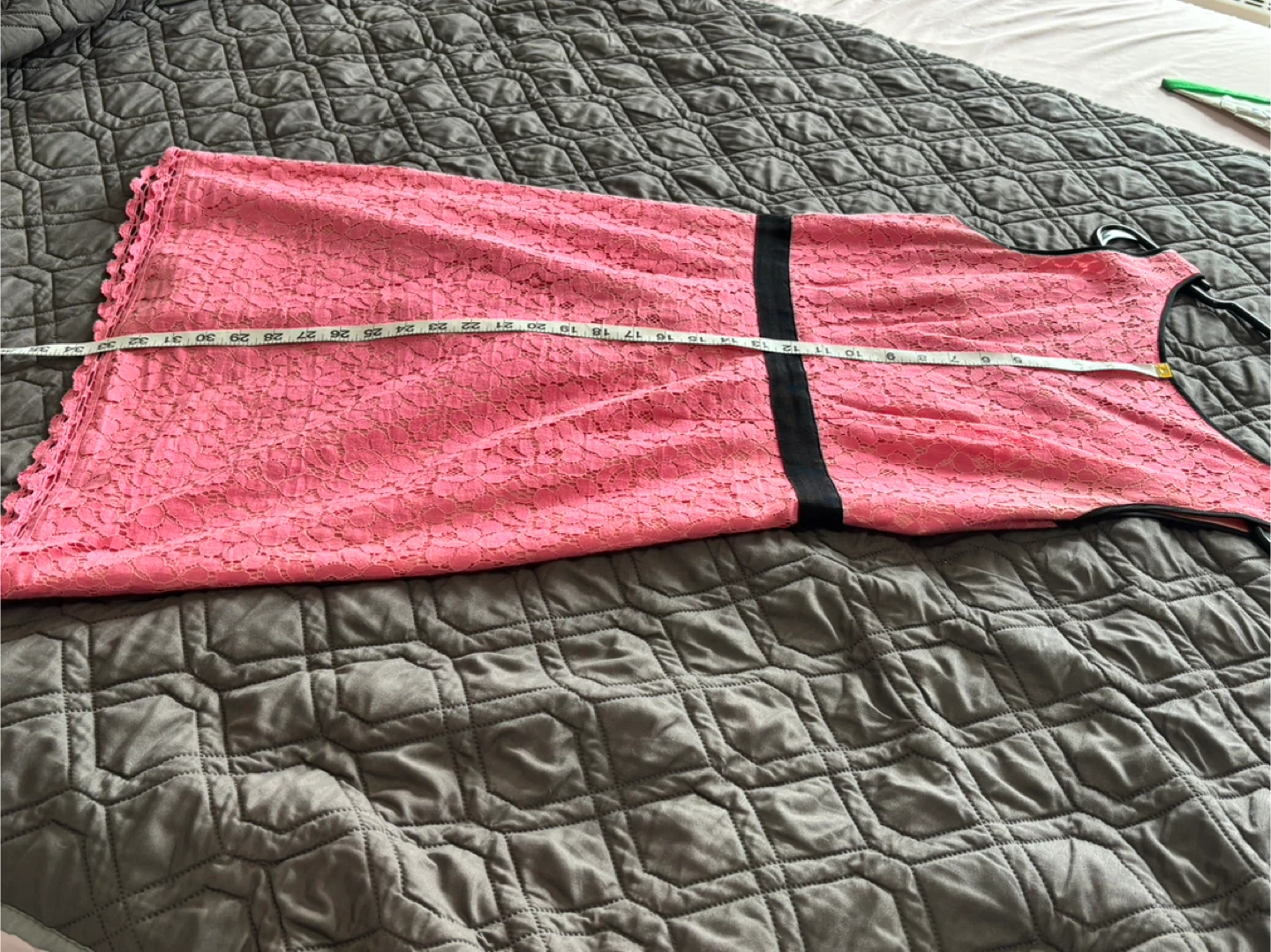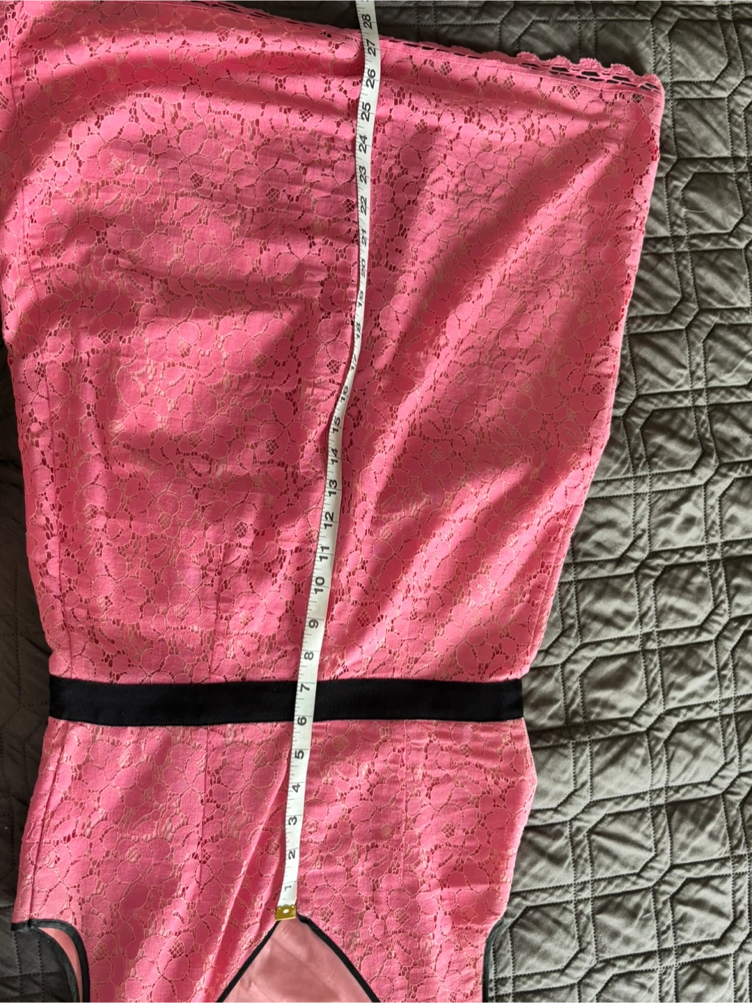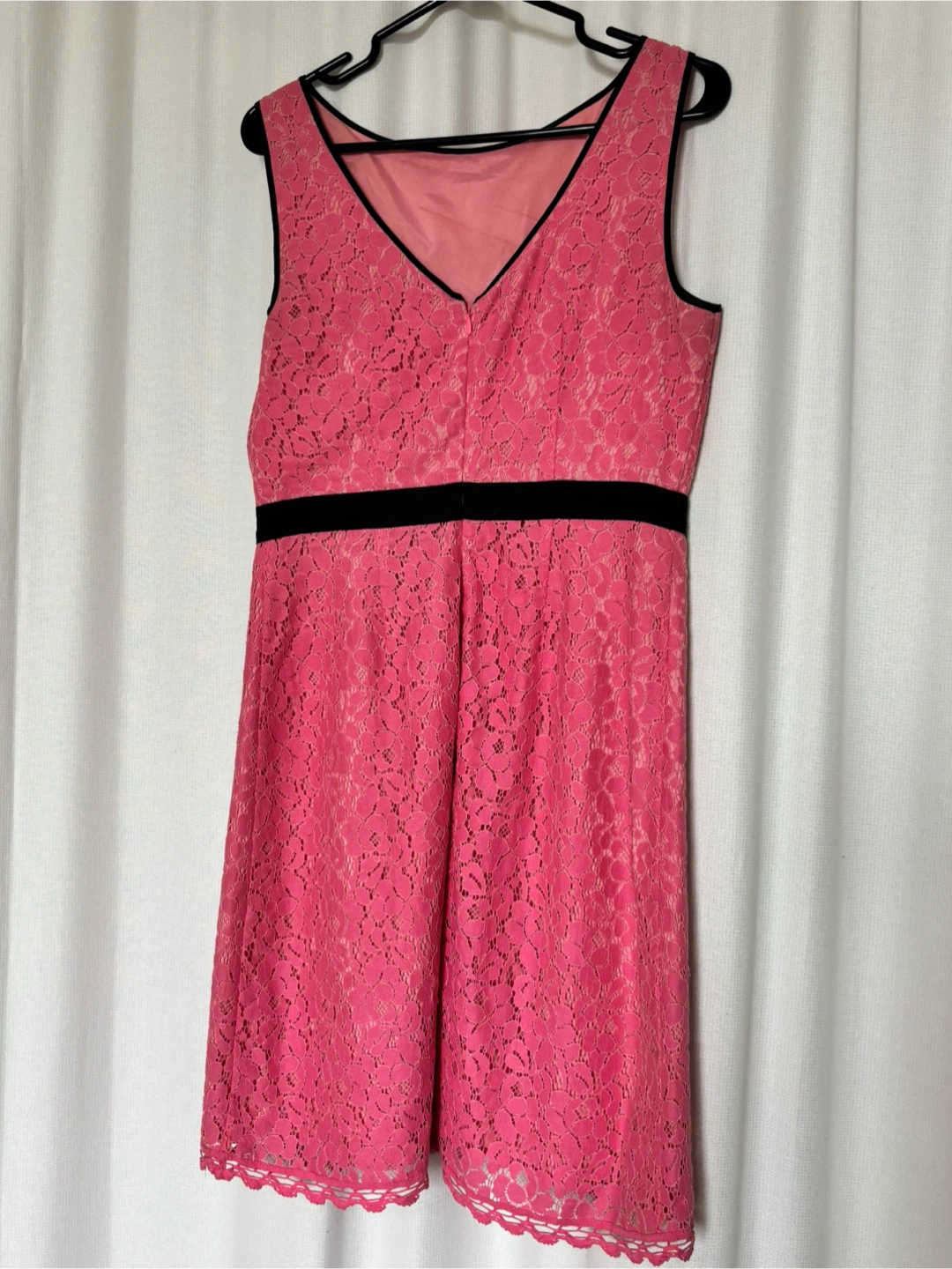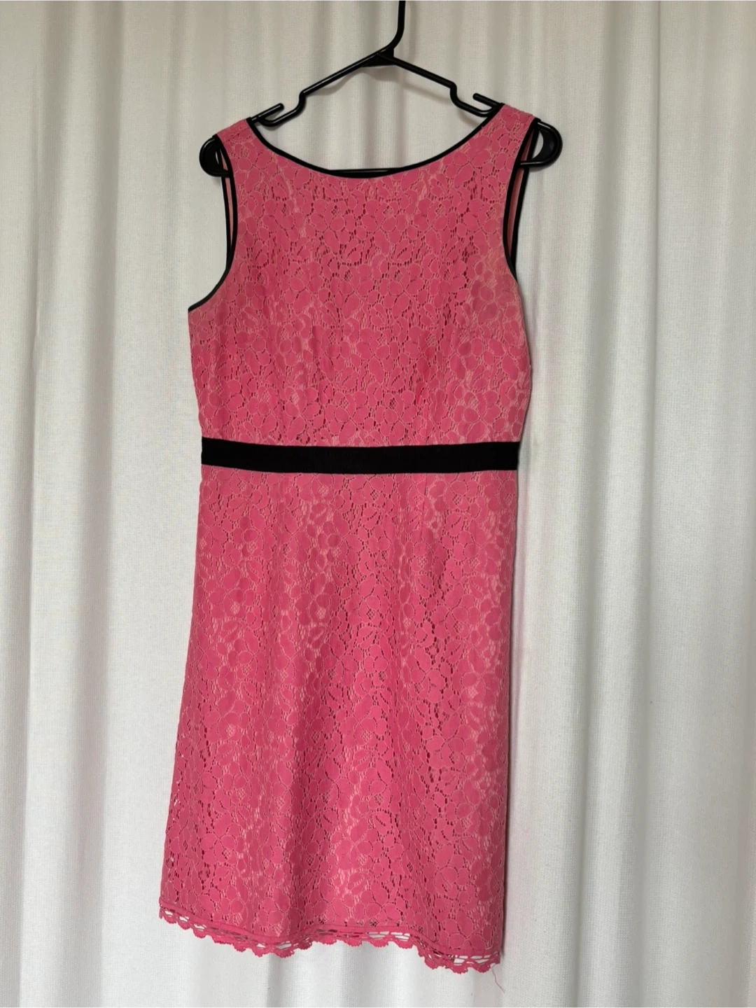 Selling a cute Chic by Jacob pink lace dress in size M/M! It has a black band at the waist and a scalloped hem. The dress is in great condition and ready for a new home