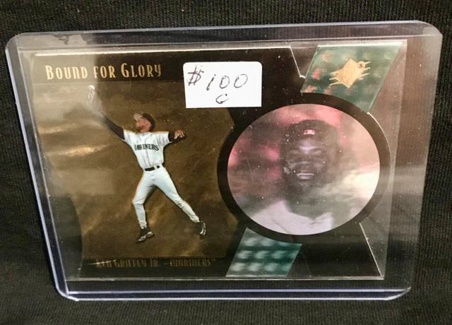 Up for grabs is a 1997 SPx Bound for Glory #19 Ken Griffey Jr. HOF Die Cut Holo baseball card, a striking collectible featuring a unique die-cut design! This card showcases Griffey in his prime, ready to add some glory to your collection.