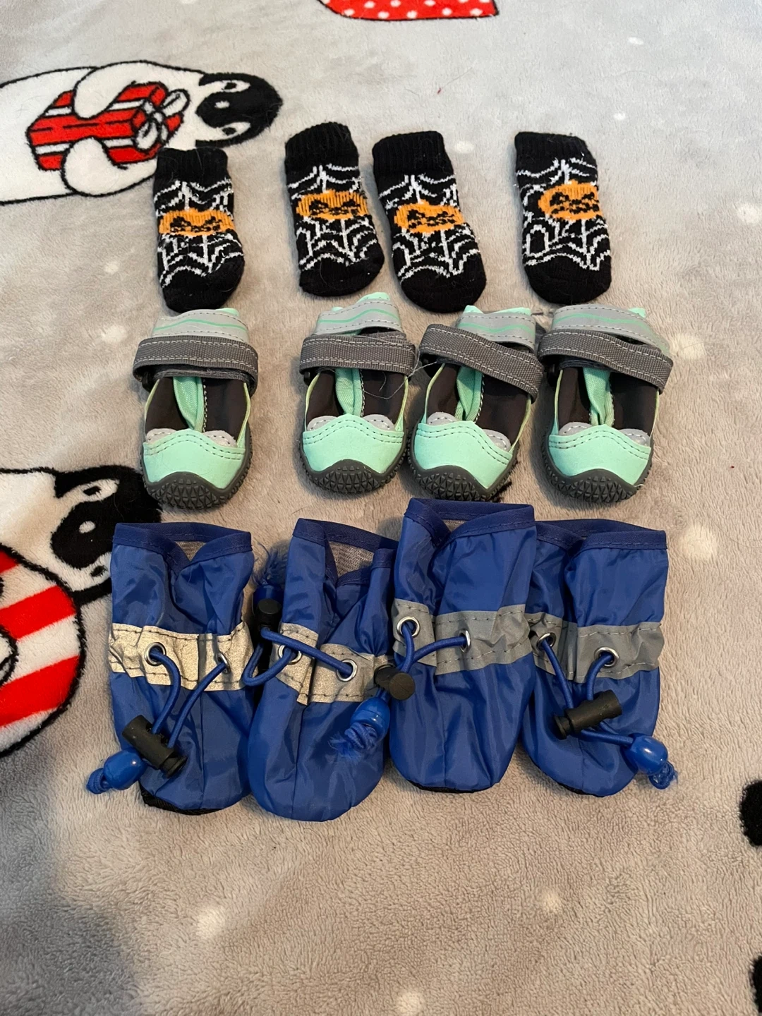 169Pick Up Only Close Too 1890 Jane Street (I DO NOT MEET THERE) Exact Address Is ONLY Given When Person Is On There Way! Lobby Pick Up Only! See My Other Listings For More Amazing Furbaby Items Serious People Only! Cash Or Etransfer Payment Only **FIRST COME FIRST SERVE BASIS** $10 FIRM ALL Must Take All All 1.5” Wide (MEASURE YOUR DOGS PAWS) i can not say if they will fit or not NO TRY ONS! Includes Blue Brand New Booties Teal Heavy Duty Boots (Used One) No Slip Socks (Used Once)