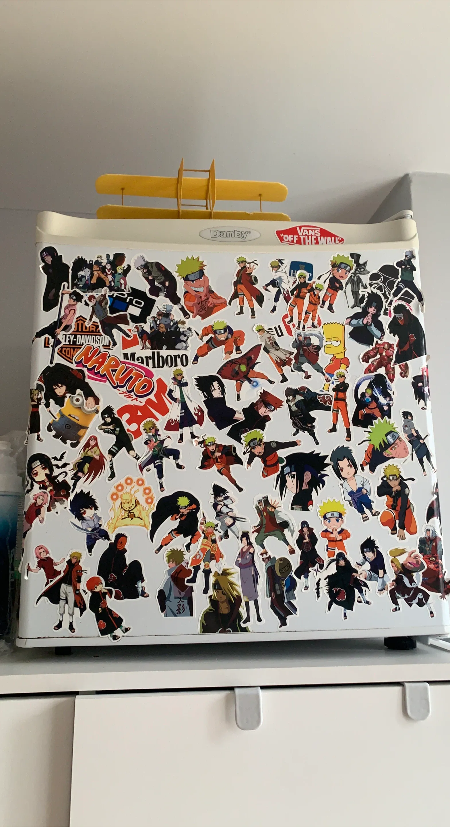 Moving out ! Selling a white Danby mini fridge. It's in good working condition and perfect for a dorm room, office, or small space. It has some stickers on the outside, as shown in the pictures.
