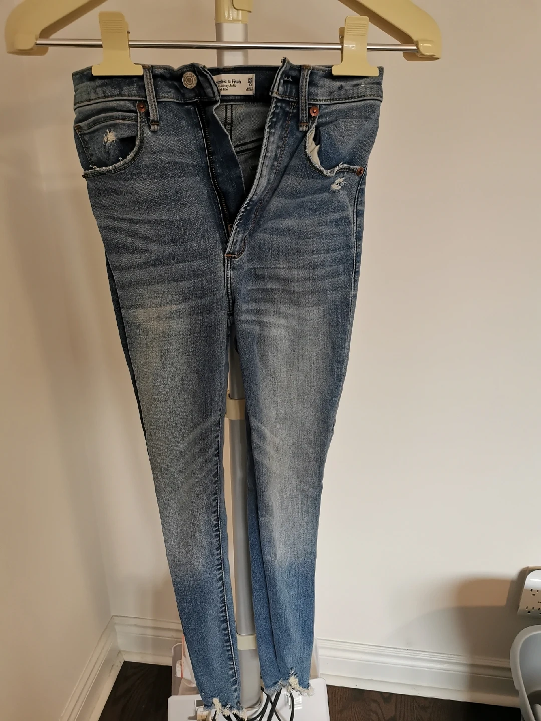 Selling a pair of Abercrombie & Fitch Super Skinny Ankle High Rise jeans. They are a size 25.