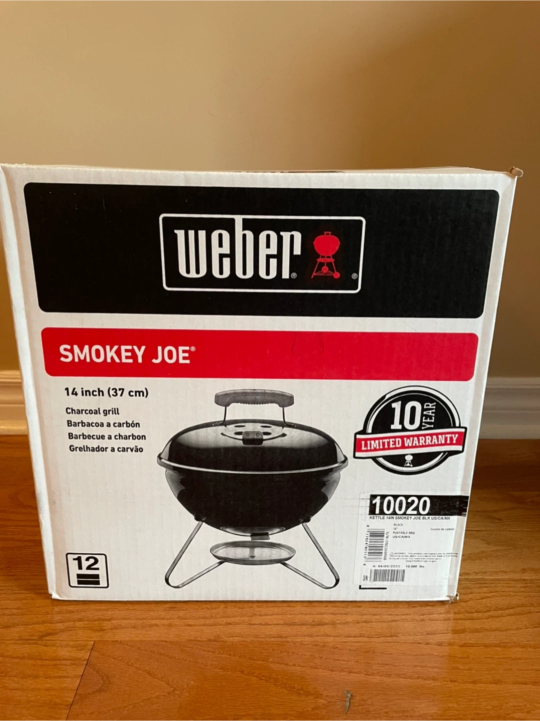 Selling a brand new Weber Smokey Joe 14-inch charcoal grill, still in its original box! This portable BBQ is perfect for small spaces and outdoor adventures. It comes with a 10-year limited warranty. Get ready for some delicious barbecues!