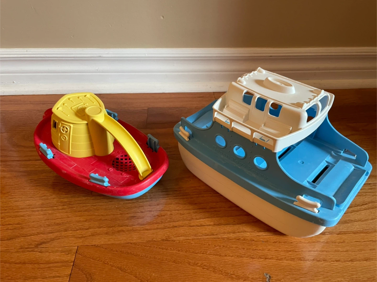 76Selling a Green Toys Tugboat and Ferry Boat set! Both boats are in great condition and ready for some fun in the tub or pool. The tugboat is red and yellow, and the ferry boat is blue and white. Great for imaginative play!