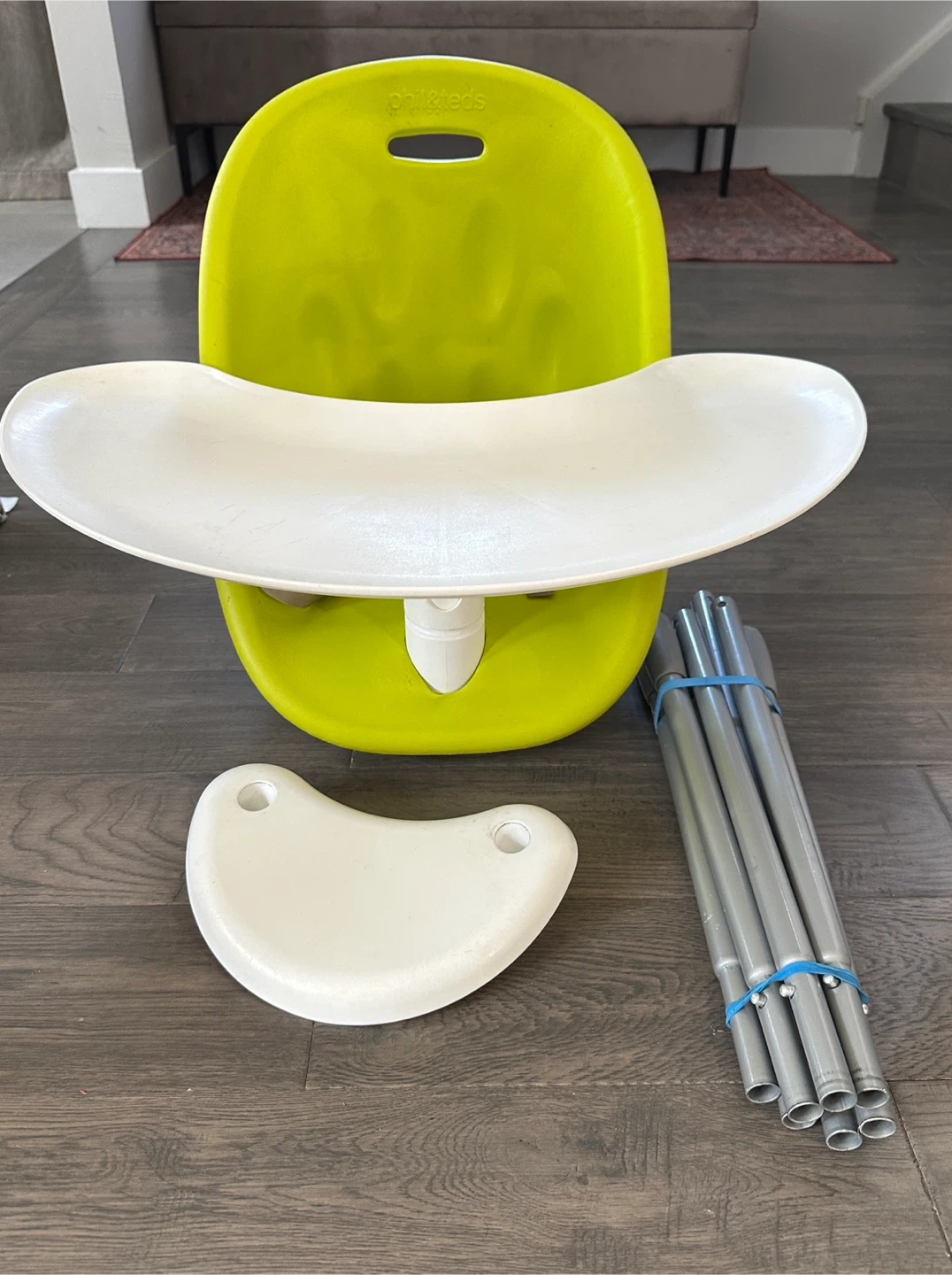 287Selling a phil&teds High Pod high chair in a vibrant lime green colour! It comes with the tray, a footrest, and the legs, so it's all ready for your little one. It's in great condition and ready for a new home