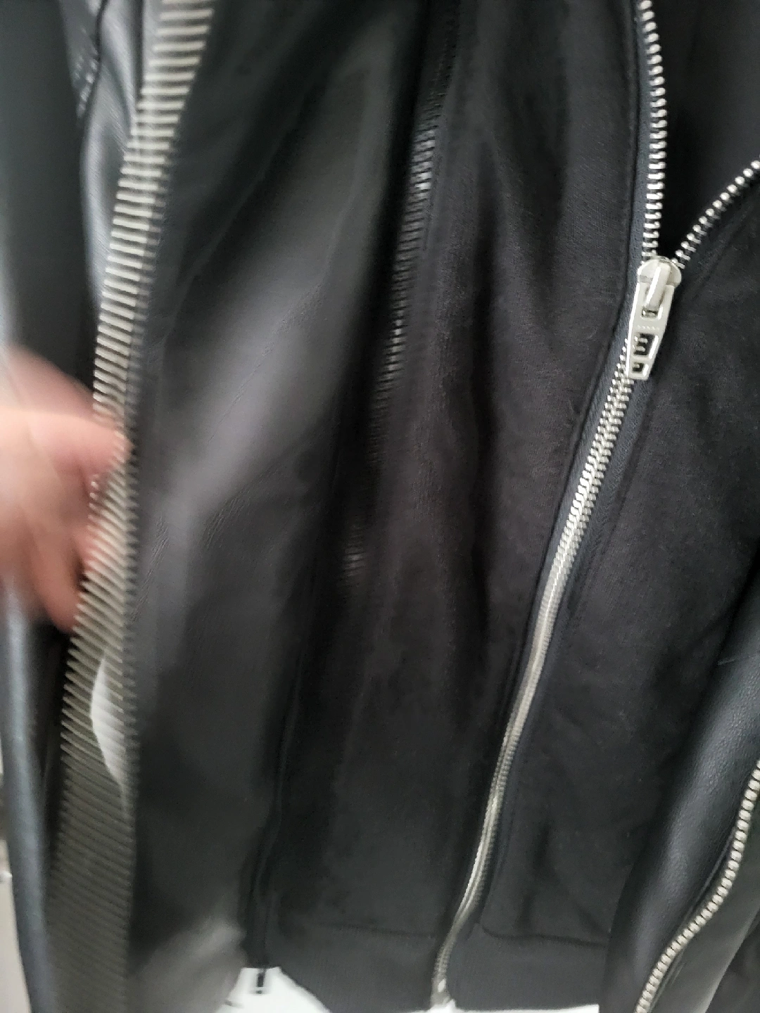 It's in great condition and features a stylish design with zippers and a hood. Perfect for adding a bit of edge to your wardrobe