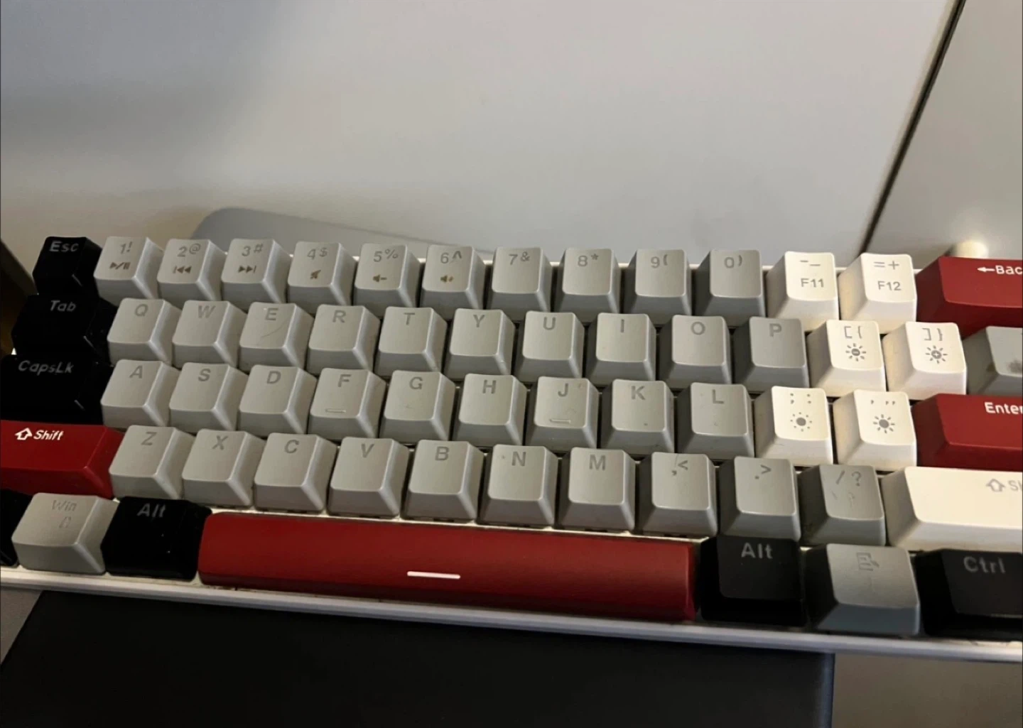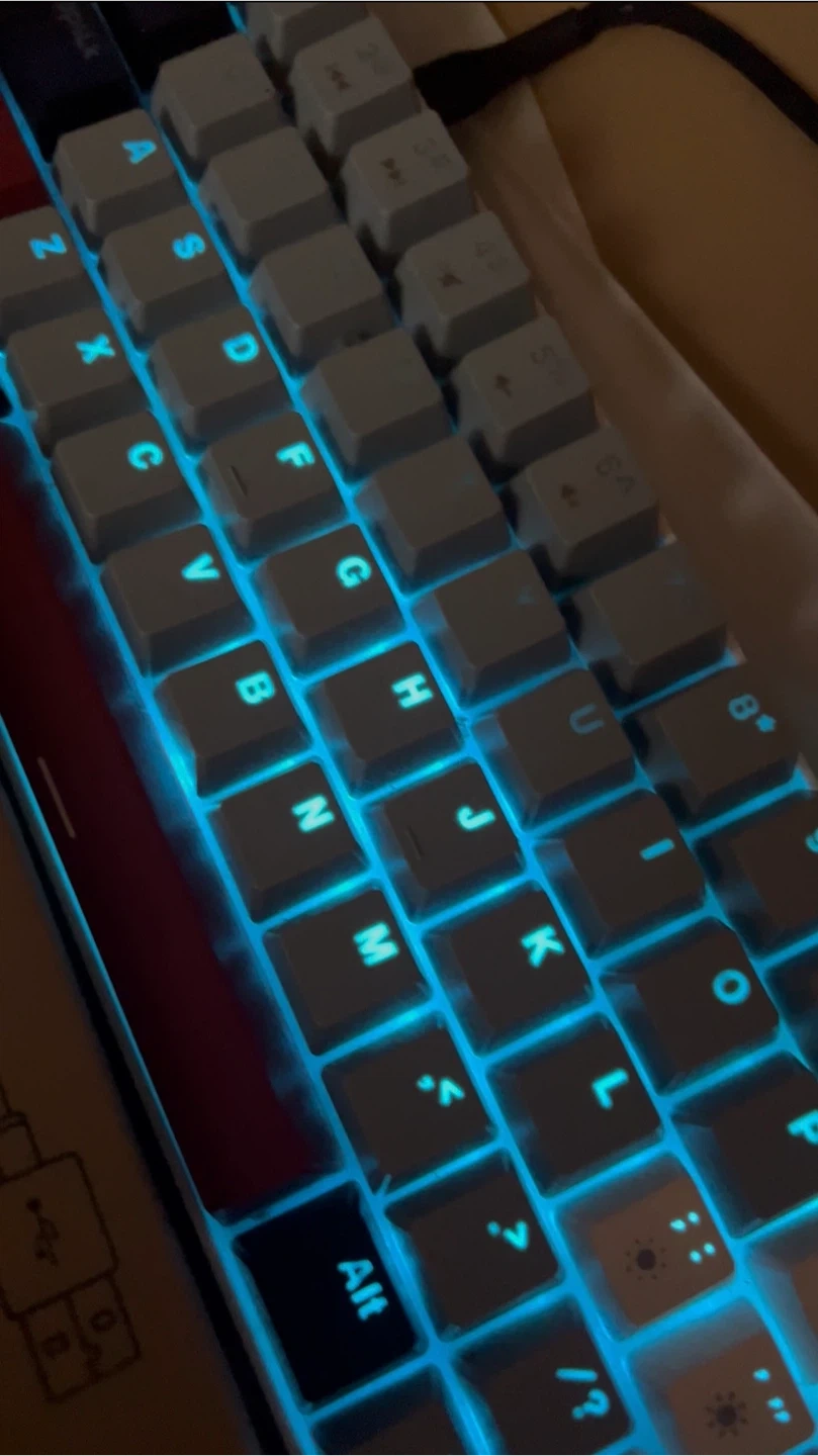 Selling a portable MageGee gaming keyboard wired gamer keyboard with blue LED backlit, in great condition! It features a unique colour scheme with red, grey, and black keycaps.