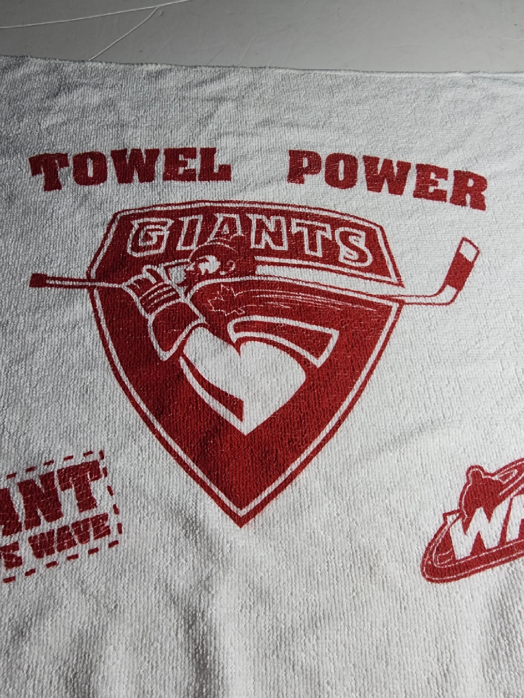 Show your team spirit with this Vancouver Giants "Towel Power" microfibre towel! It features the Giants logo and the WHL logo in red on a white towel. Perfect for any hockey fan!