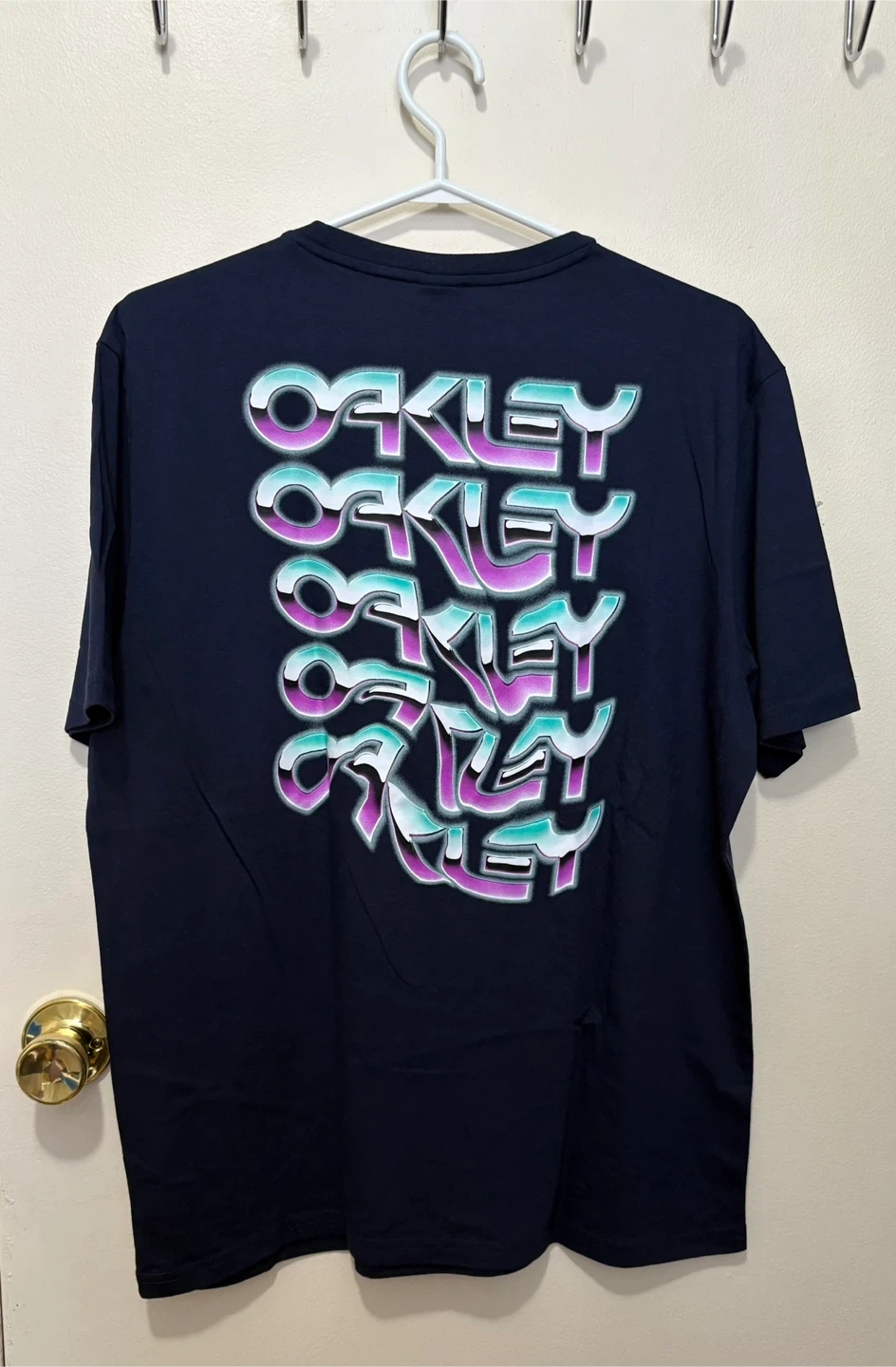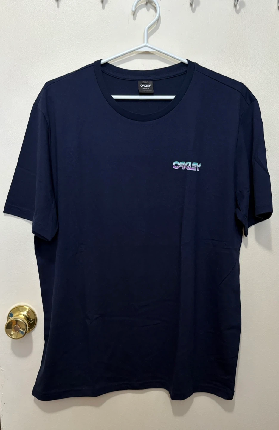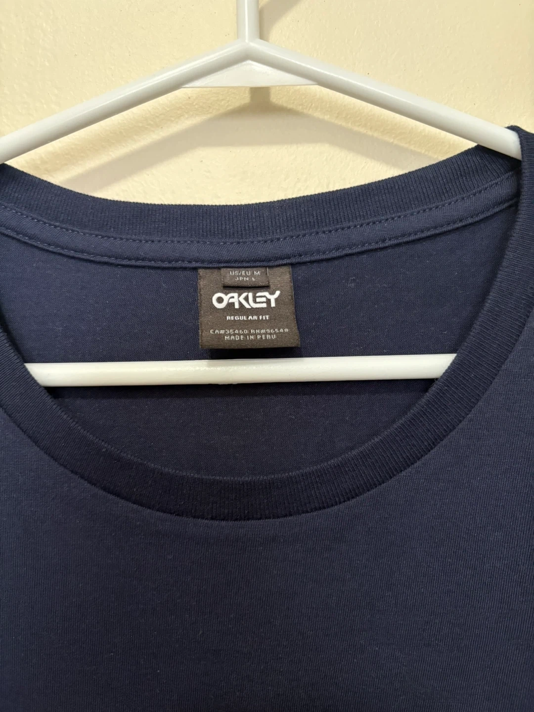 Oakley navy blue t-shirt in size medium. Features the Oakley logo on the front and a cool design on the back. Regular fit and in great condition! New w/o Tags. ➡️ Actually it's NEW, I just removed the tags because i washed it but never worn. 😊