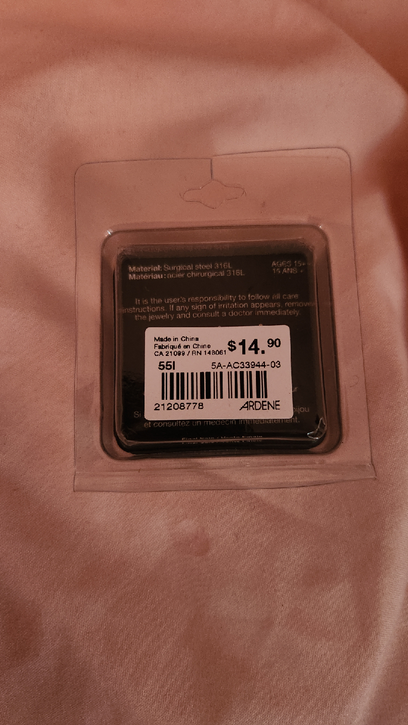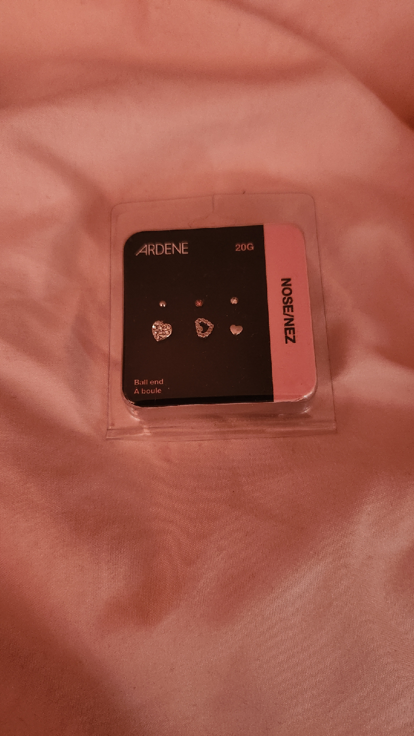 These Ardene nose studs are brand new in their original packaging! They're a cute heart design and are 20G. The material is surgical steel 316L. Originally bought for $14.90