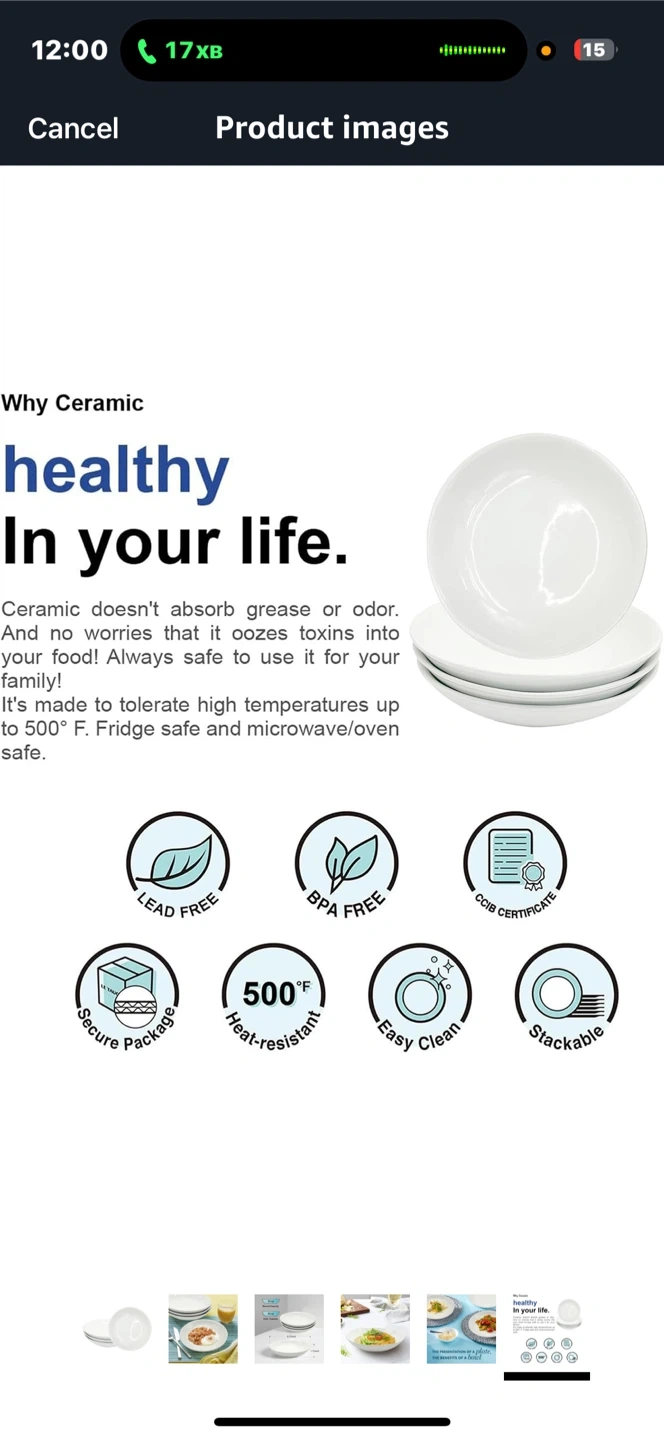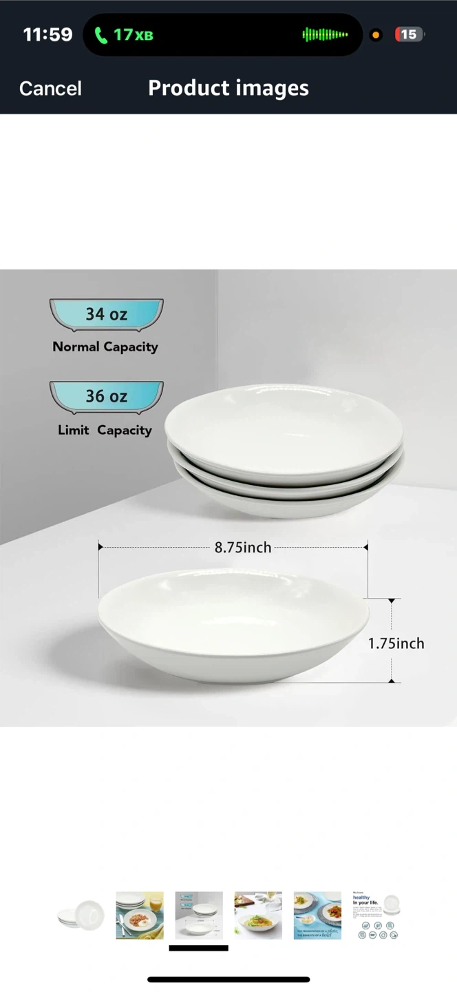 15These ceramic plates are perfect for everyday use! They are lead-free and BPA-free, so you can feel good about using them for your family. - Heat resistant up to 500°F - Easy to clean - Stackable Each plate has a normal capacity of 34 oz and a limit capacity of 36 oz, with a diameter of 8.75 inches and a height of 1.75 inches