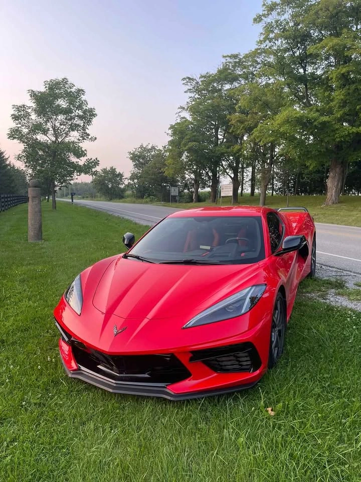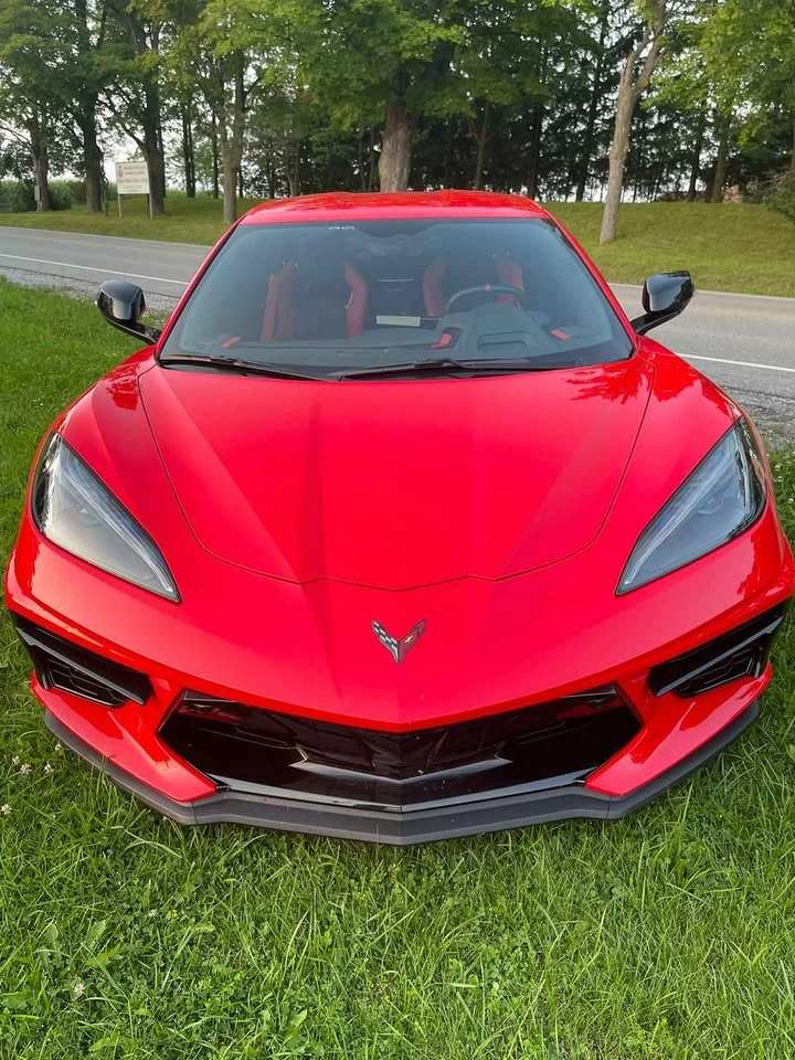 Super clean and highly optioned 2LT 2021 Stingray Coupe. Exterior: Finished in torch red, Z51 with magnetic ride, bright red painted calipers, performance exhaust, 5 trident spoke machined face spectra painted gray rims, edge red engine cover, black factory splash guards. Interior: Adrenaline red two-tone seats, GT2 seats with torch red seatbelts, 8-Speed dual clutch Transmission, heated steering wheel, ventilated seats, wireless charging, power telescoping steering, Wireless Apple/Android CarPlay, performance data/video recorder, front camera, heads up display. Paint protection film on front bumper, hood and fenders. Paint correction done and finished with Ceramic coating. Around 13,000km