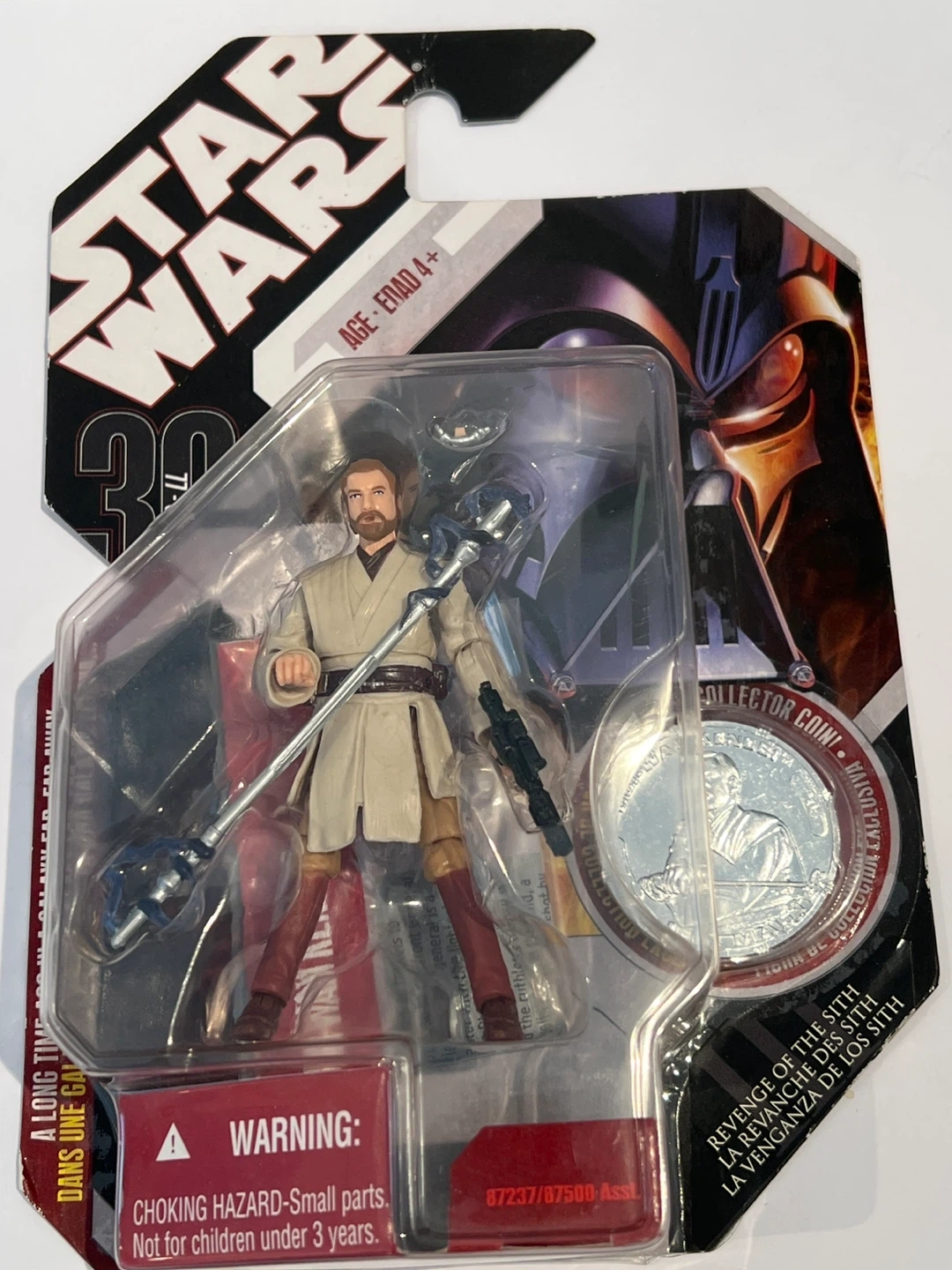 Selling a Star Wars 30th Anniversary Obi-Wan Kenobi action figure! It's in its original packaging and includes a collector coin. A great addition to any Star Wars collection!
