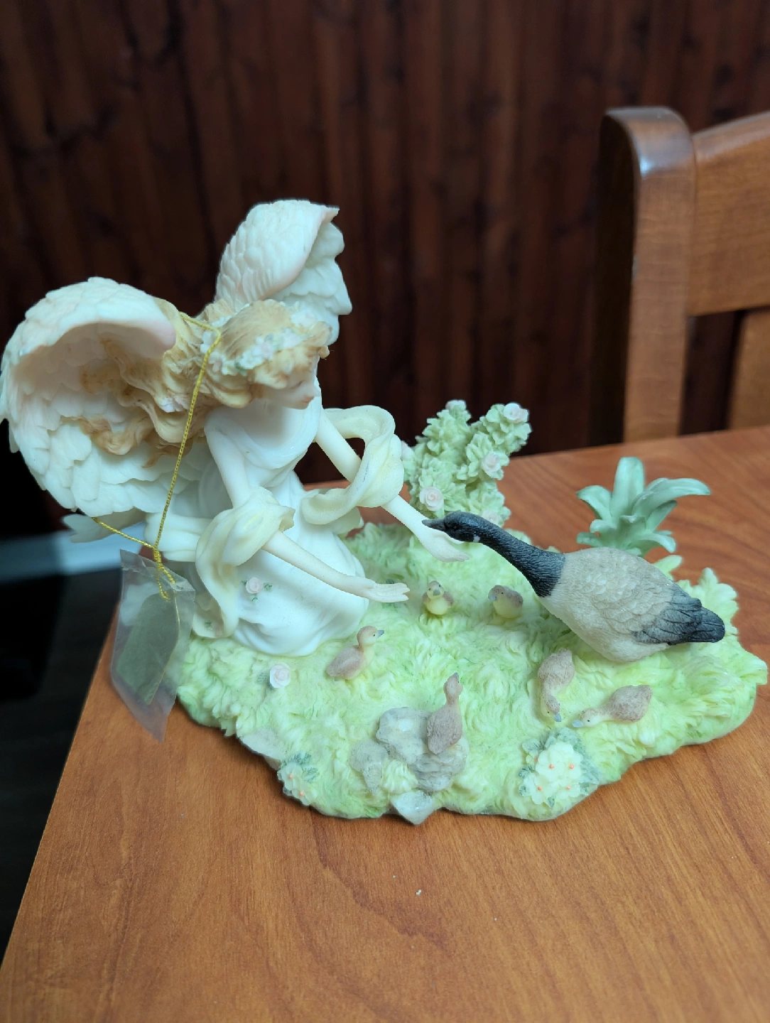 A beautiful figurine featuring an angel with geese and goslings. It's in great condition and would make a lovely addition to any collection or home decor. No box.