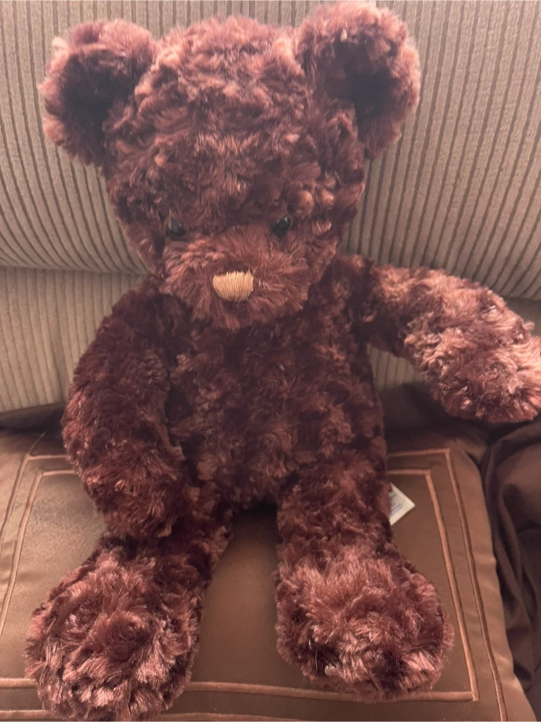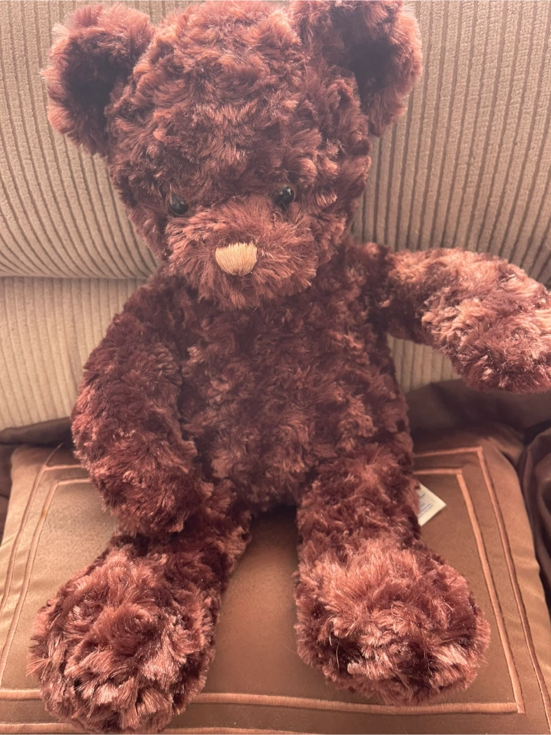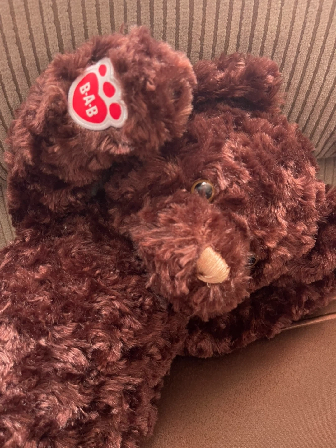 A cuddly chocolate brown Build-A-Bear teddy bear, ready for a new home! This plush friend is in great condition and looking for someone to share lots of hugs with!