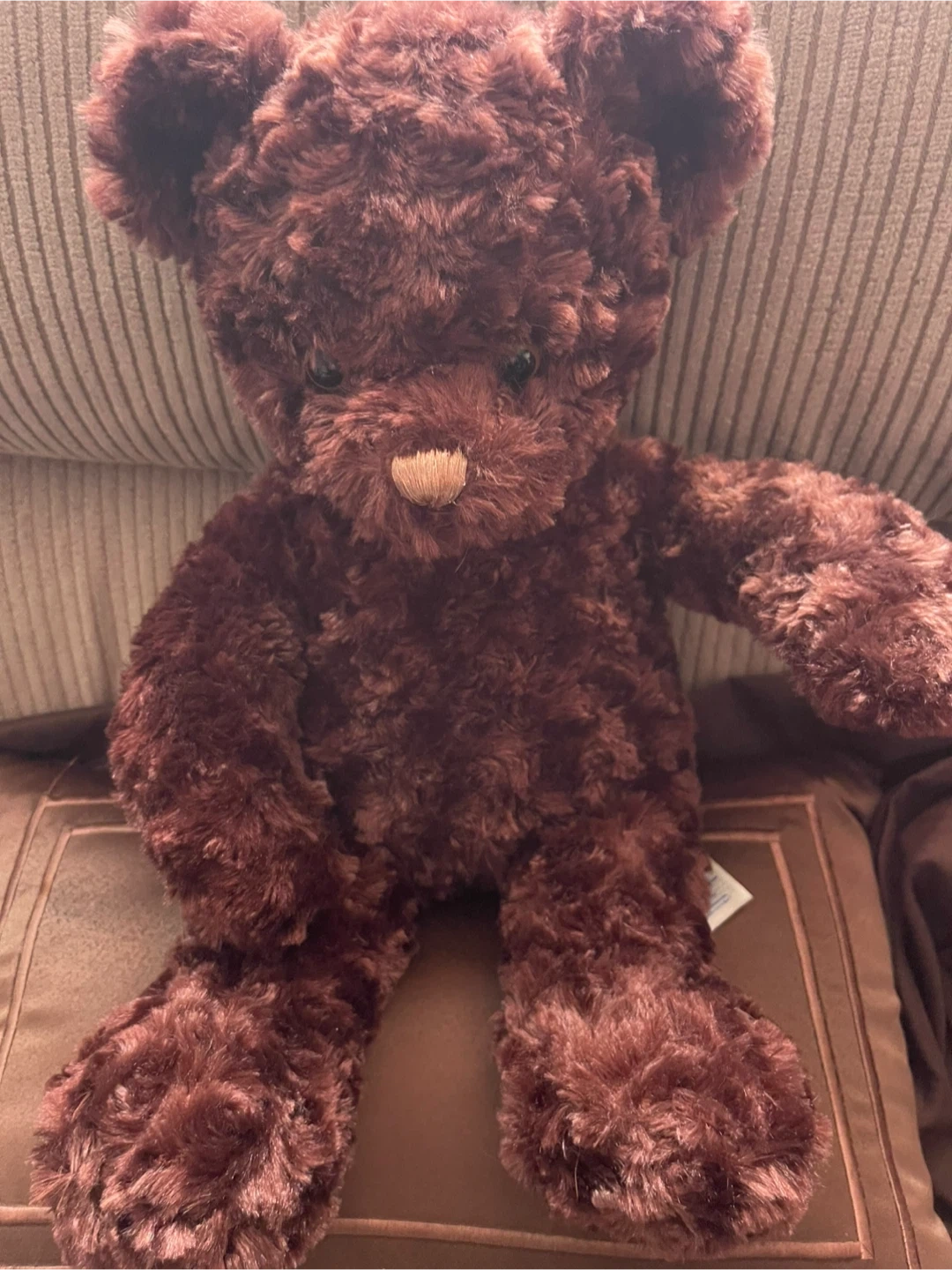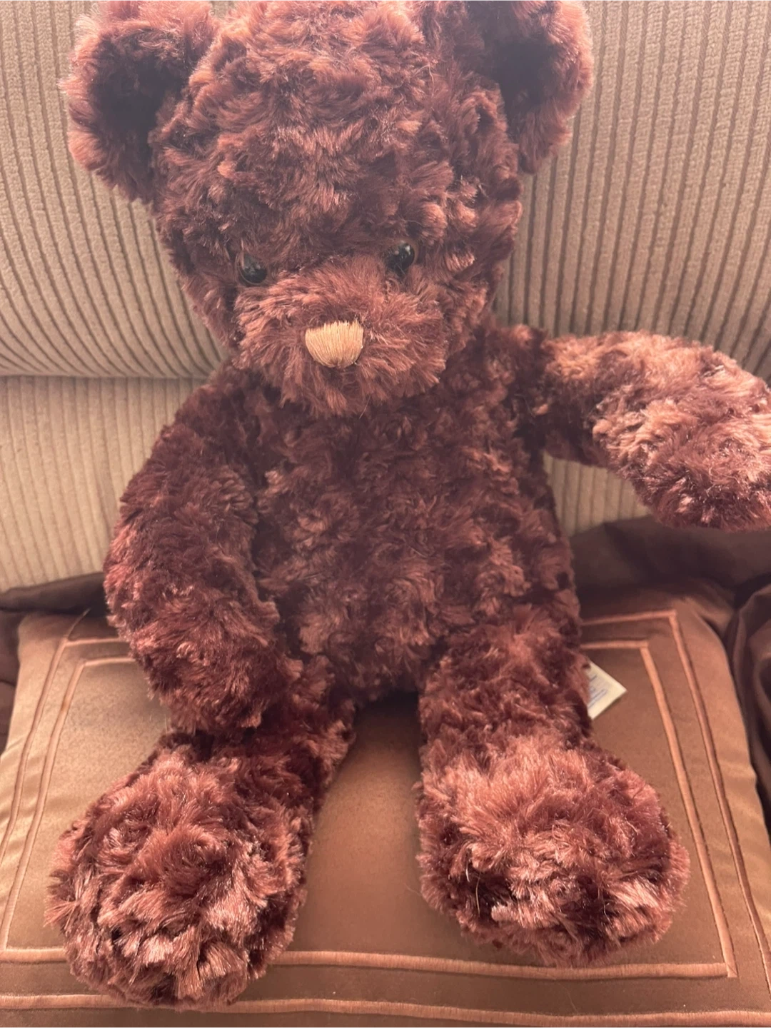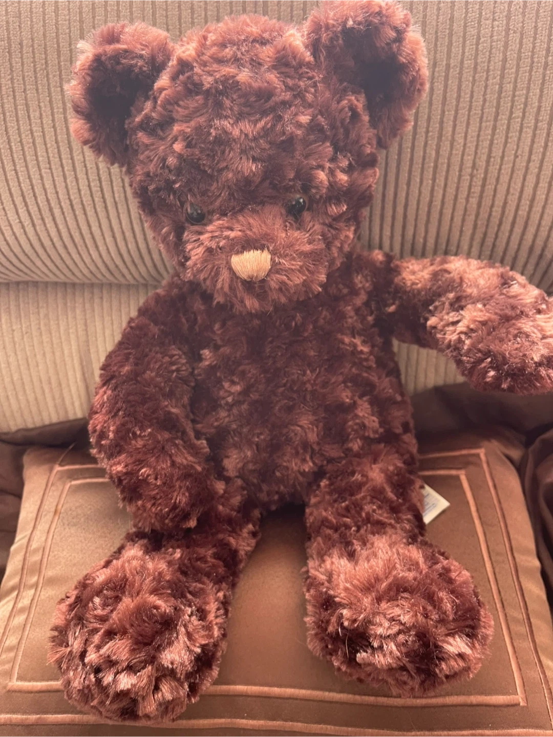 A cuddly chocolate brown Build-A-Bear teddy bear, ready for a new home! This plush friend is in great condition and looking for someone to share lots of hugs with!