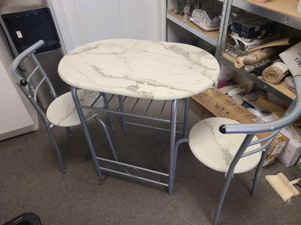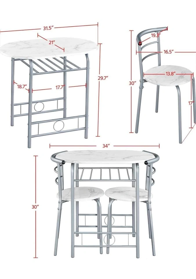 10Compare at $218 on Amazon. Item is new, never used. Assembled for pictures and will come assembled. Pickup in Bowmanville, Liberty and 401 area. Measuring 31.5 inch L x 21 inch W, the oval tabletop is large enough for 1-2 people to dine, read or have a close chat cozily. The chairs perfectly fit the curving edges of the table, allowing you to entirely tuck them away when not in use to free up extra space for you. The space-saving design makes this set the perfect accent for compact spaces. This kitchen table set includes 2 chairs with a mid-height backrest and round wooden seat. A curved slat backrest perfectly wraps your back and gives you strong body support. You can also add seat cushions to achieve a softer sitting experience. The compact oval tabletop allows one or two people to dine, work, study, play cards or chat as wanted. The lightweight design makes this set easy to move around for your changing needs. It could perfectly fit into a small kitchen, dorm room, apartment or a corner of your house to create a cozy nook for dining or relaxation. Rounded edges of the table reduce the risk of people hitting their bodies, making this 3-piece table set safe for all family members. Reinforced chair structure ensures a steady sitting experience. Fitted with a convenient rack under the tabletop, this breakfast table provides additional storage space for wine bottles, napkins and other essentials, or you can remove the shelf for extra leg room. The timeless color scheme and small dimensions make this set perfect for the kitchen, balcony, bedroom, apartment, dorm room, office, temporary activity & party, etc.