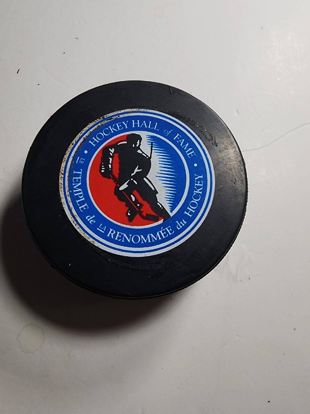 Selling a couple of hockey pucks! One is from the Hockey Hall of Fame, and the other commemorates Glen Sather's induction to the Edmonton Oilers in 1997. Both are in good condition and would be great for any hockey fan!
