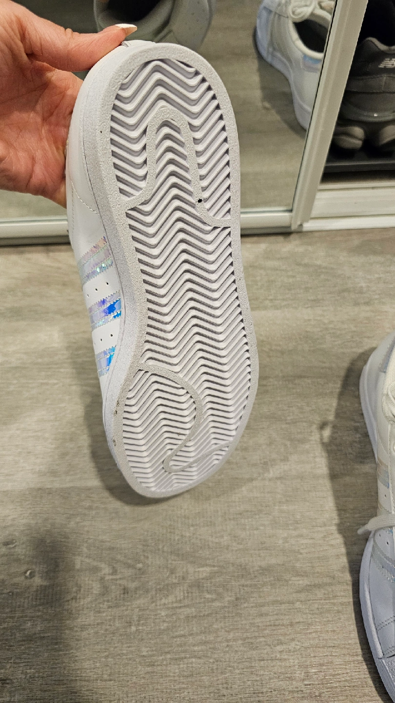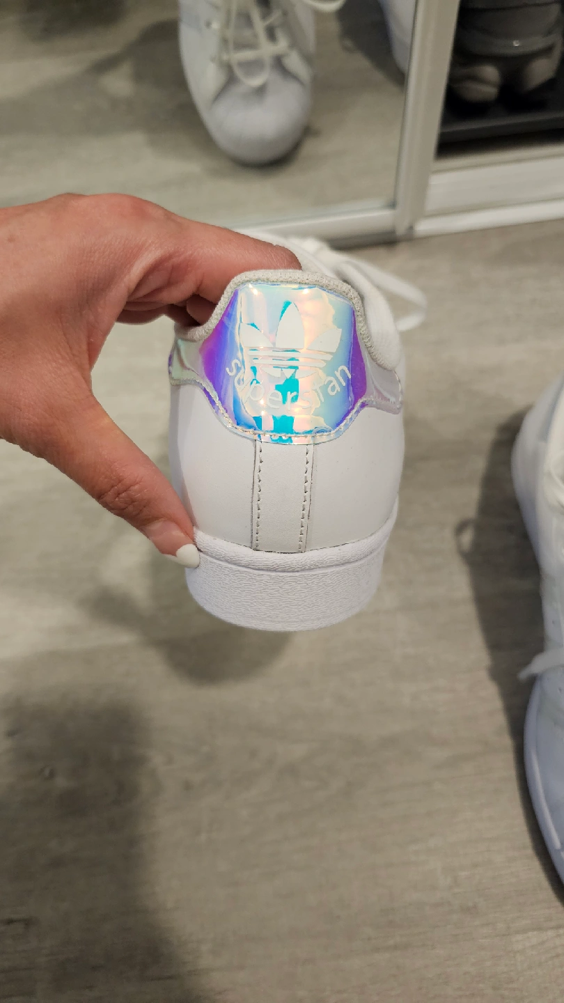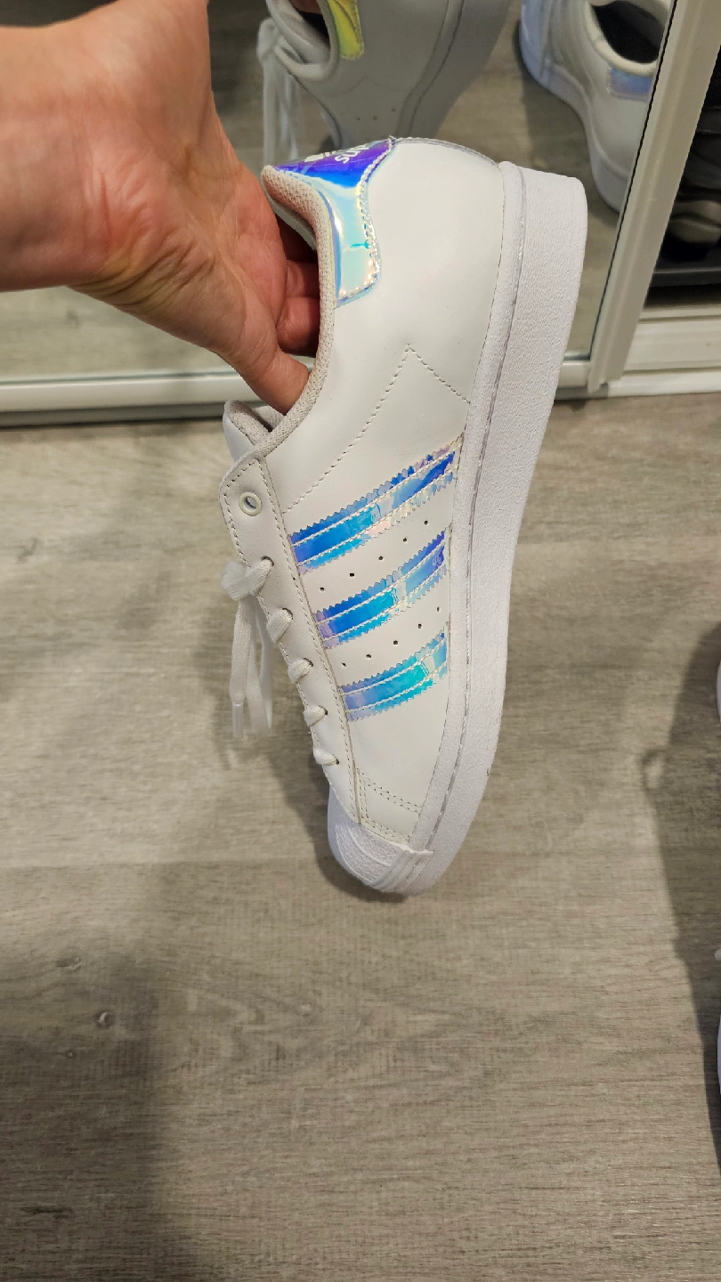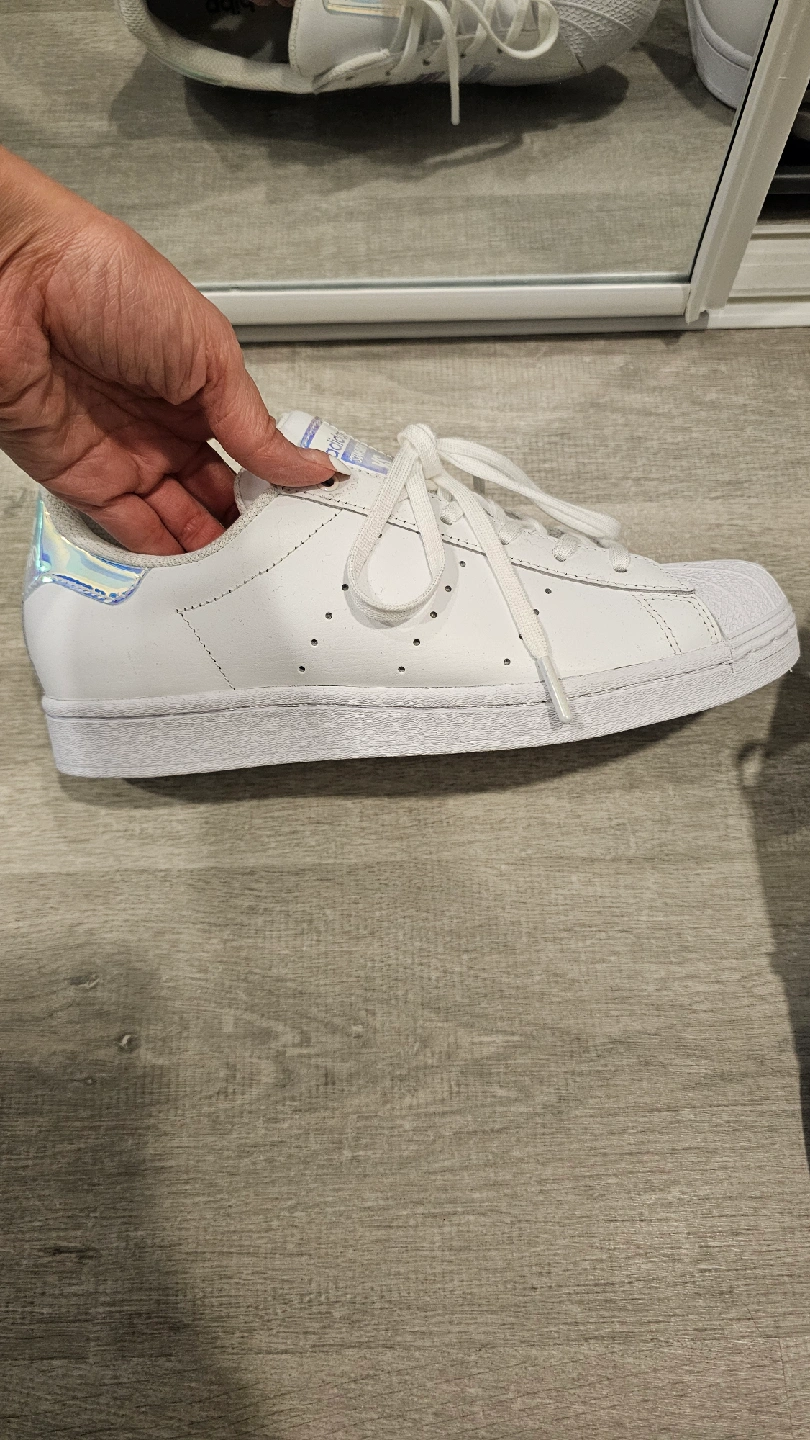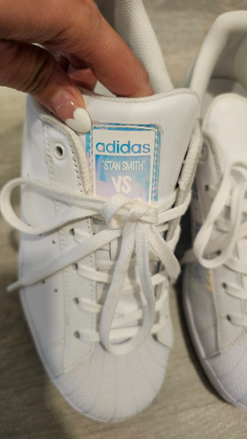 40Selling a pair of Adidas Superstar Stan Smith VS shoes in white! Size 6.5 US. They are brand new, never been worn and ready for a new home. The iridescent detailing adds a fun touch!