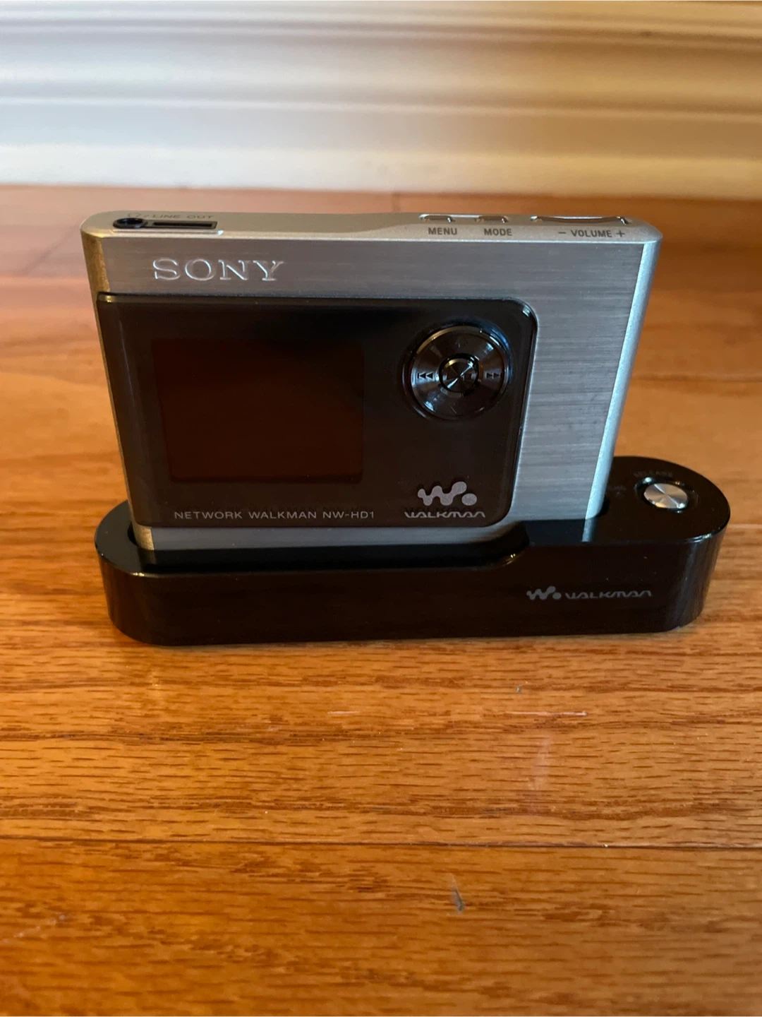 Selling a Sony Network Walkman NW-HD1 digital music player. It comes with the charging dock, power adapter, carrying pouch, and headphones. A cool retro device for any music lover!