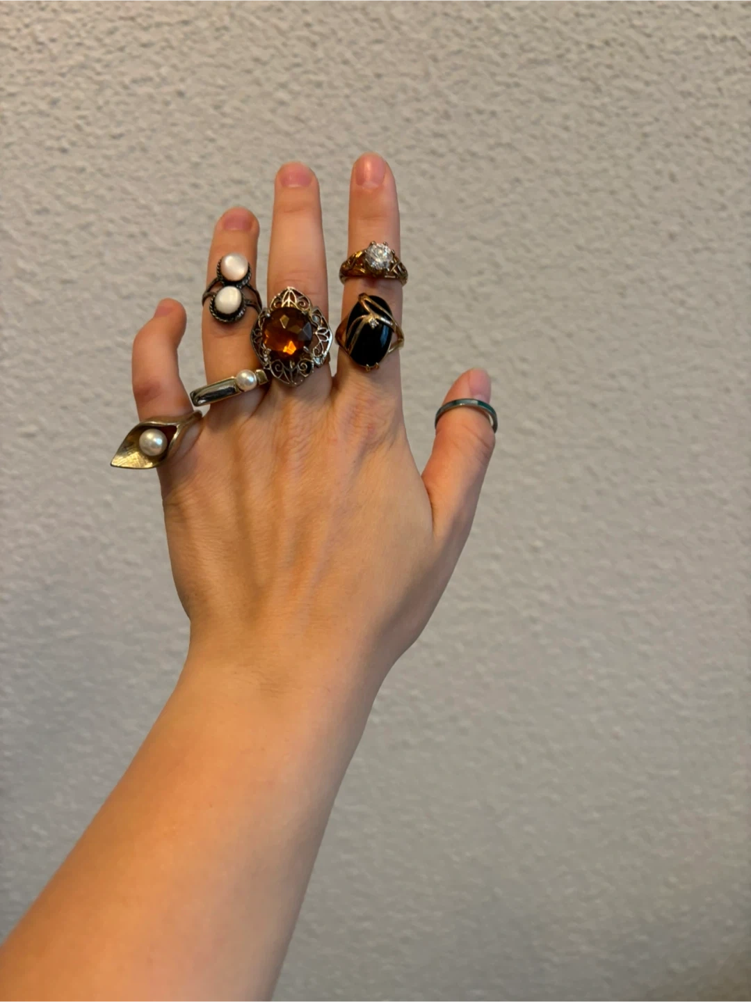 15Selling a collection of assorted vintage rings. They feature various stones and metals. Perfect for adding a unique touch to your style!