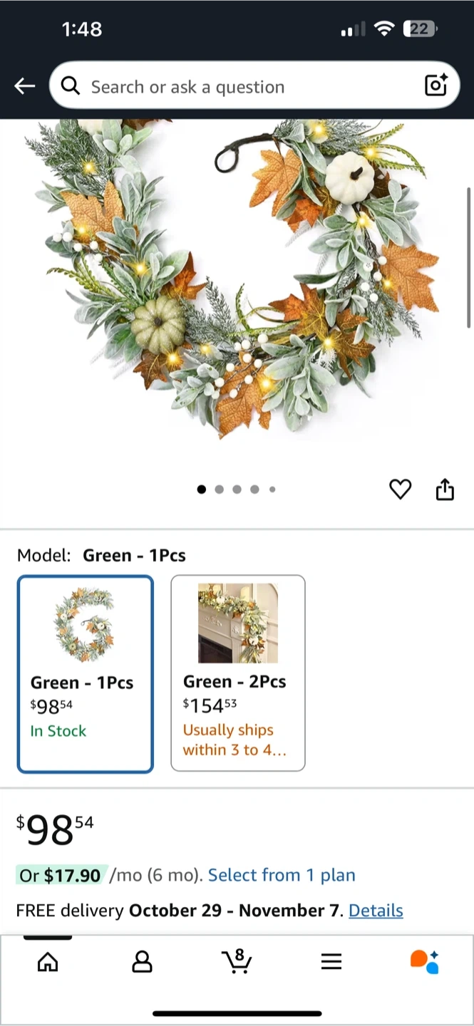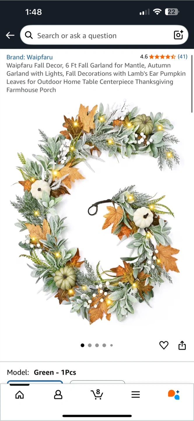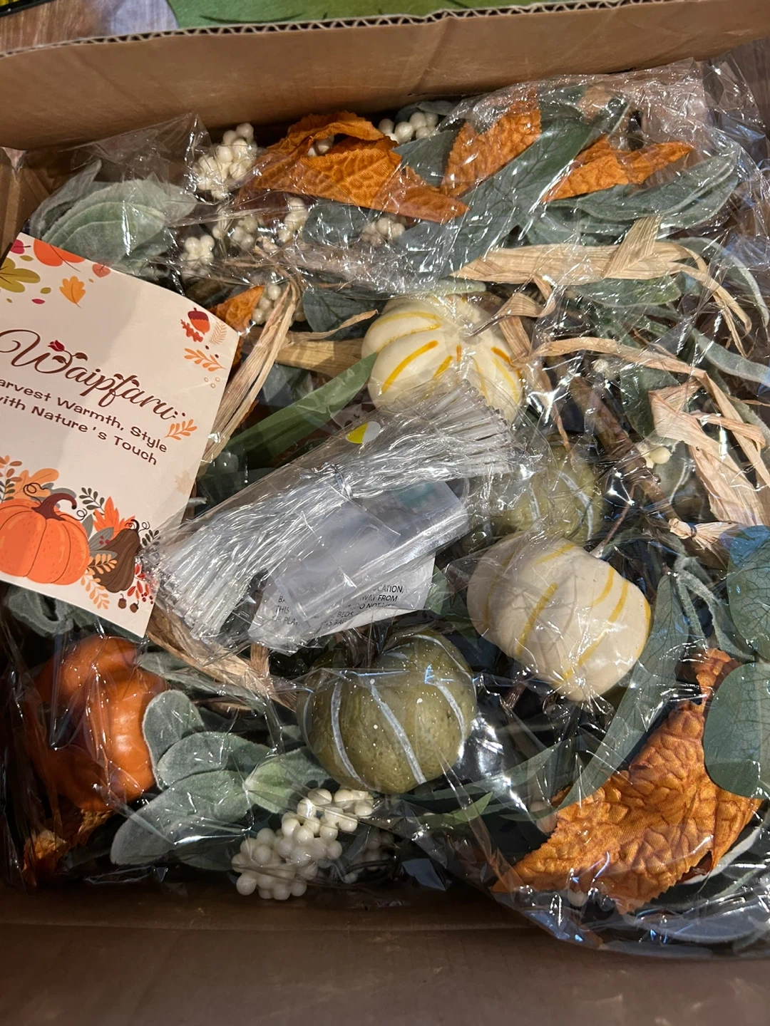 Selling a brand new Waipfaru Fall Decor Garland, still in its original packaging! This beautiful 6 ft garland features autumn leaves, ear pumpkin leaves, and lights, perfect for adding a touch of harvest warmth to your home. Originally bought for $98.54, it's ideal for decorating your mantle, table centerpiece, or farmhouse porch for Thanksgiving or any fall occasion