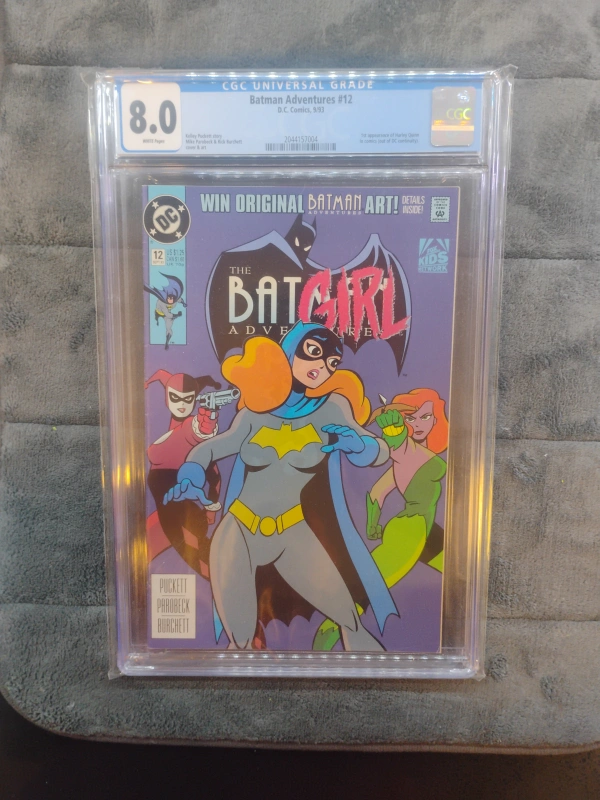Selling a graded copy of Batman Adventures #12, certified by CGC with a Universal Grade of 8.0. This comic from D.C. Comics, dated May 1993, features The Batgirl Adventures. A great addition for any comic book collector!