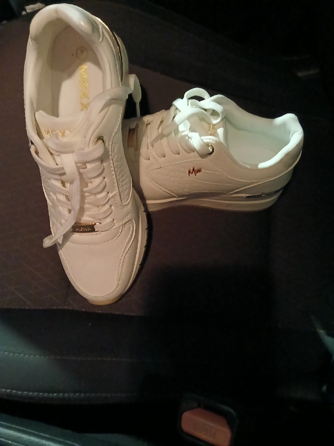 Selling a pair of MEXX ladies sneakers in white. They have a stylish design and are in good condition. Have only been tried on, not worn. Were a gift, however wrong size, and no exchange available. Do have the tag with them. Perfect for everyday wear!