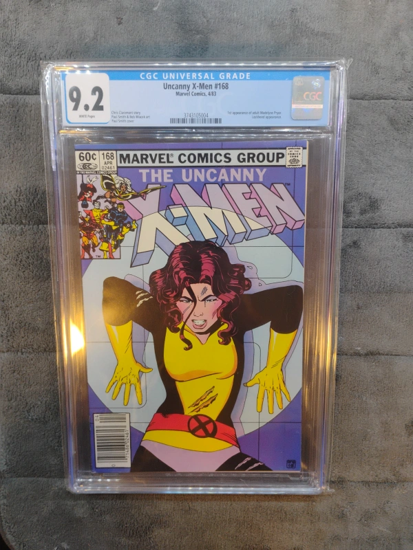 Selling a graded copy of Uncanny X-Men #168 with a CGC grade of 9.2. This comic is from Marvel Comics, April 1983. It features the first appearance of adult Madelyne Pryor and Lockheed's appearance. A great addition to any comic book collection!