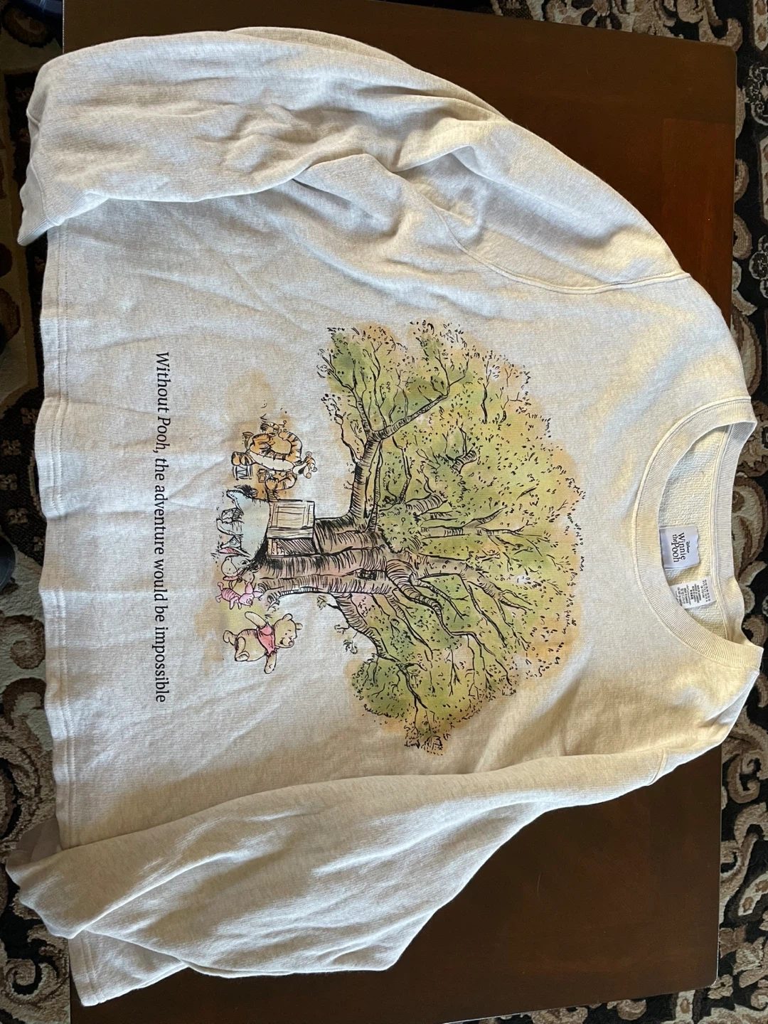 Cozy Winnie the Pooh crop crewneck! Features a cute graphic of Pooh and friends under a big tree. Perfect for a casual day out or lounging at home, size 3XL.