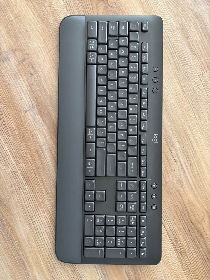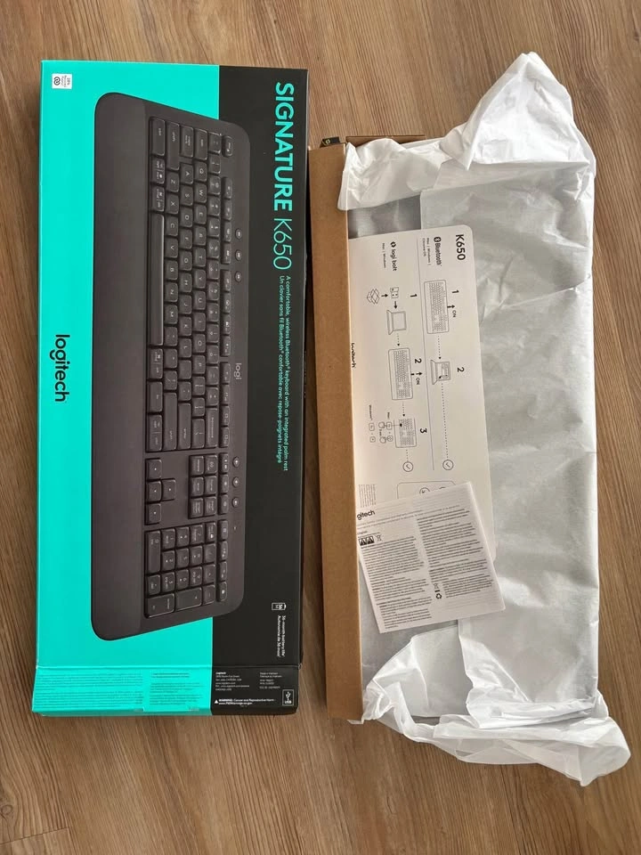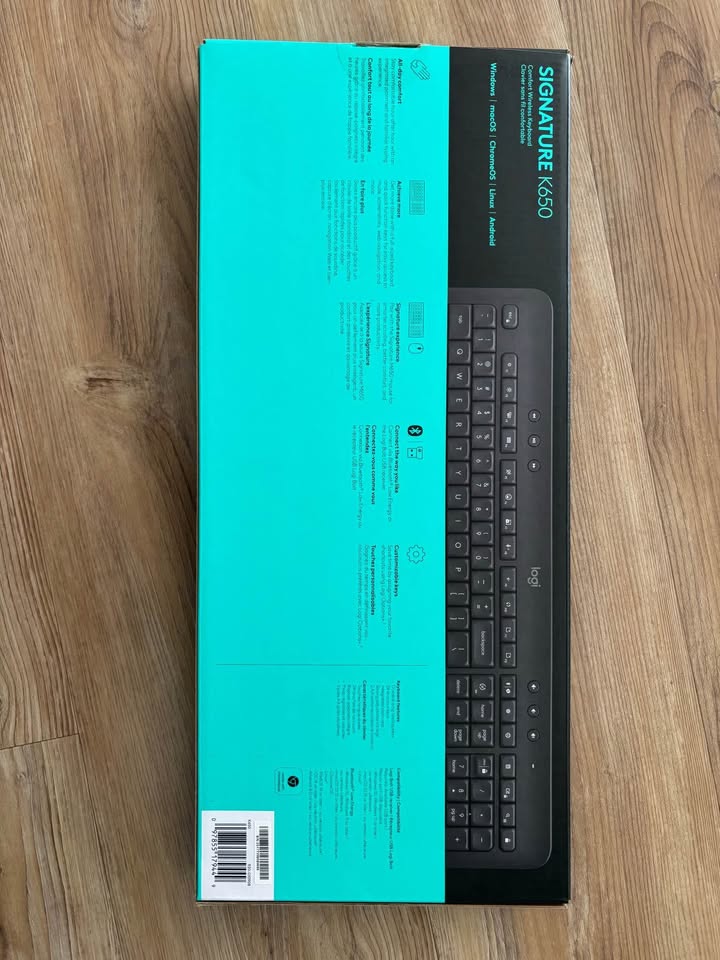 Brand new Logitech K650 keyboard, never used in graphite (black) colour, still in the original box. It has a dedicated num pad and an integrated palm-rest for a comfortable typing experience.